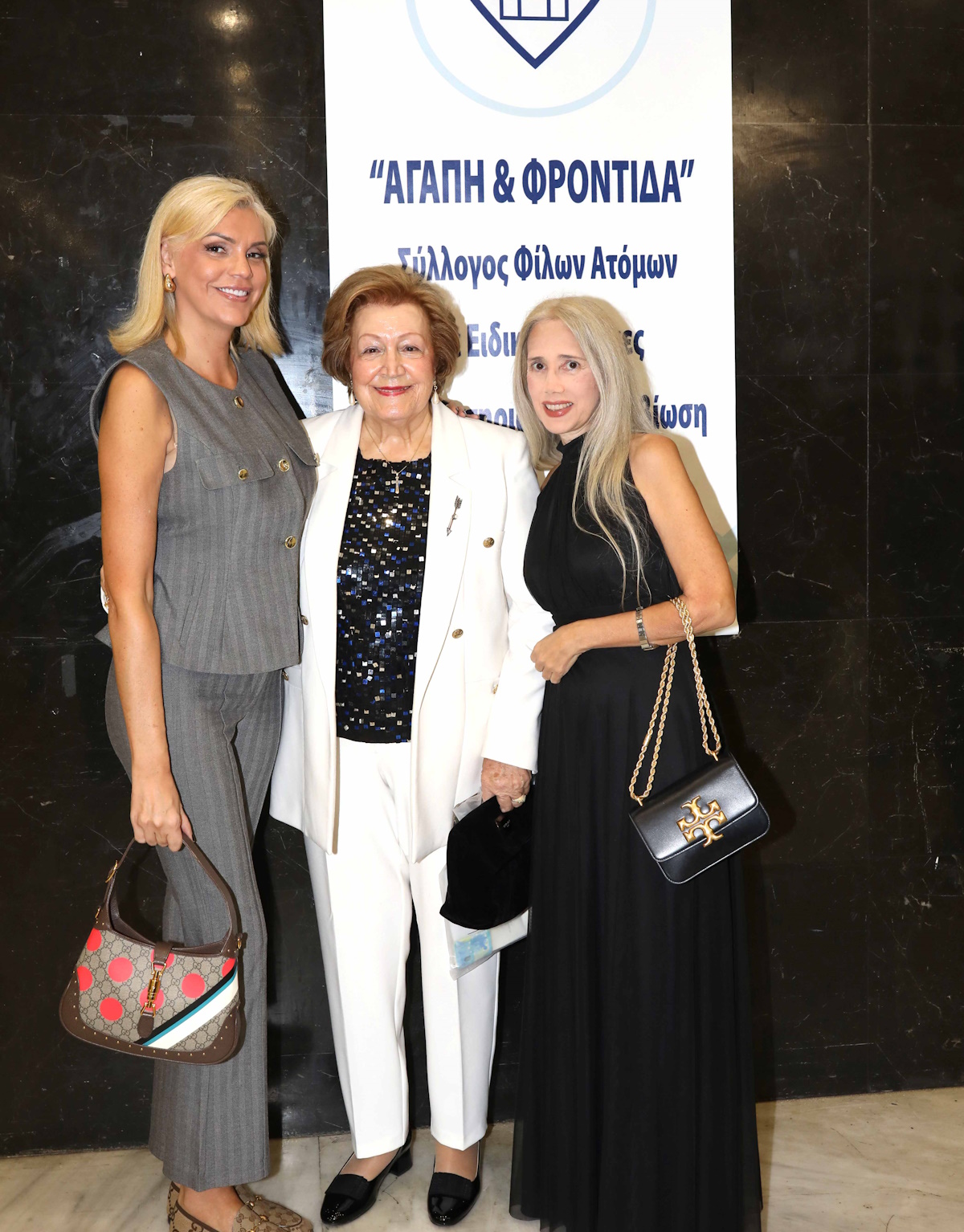 Η Πρόεδρος του Συλλόγου Φίλων ΑμεΑ «Αγάπη και Φροντίδα» Νανά Κουμπλή, η Γ.Γ. Βίκυ Χατζηαντωνίου και η Πρόεδρος του Συλλόγου Γονέων ΑμεΑ «Το Εργαστήρι» Μαρία Τουρκοχωρίτη υποδέχτηκαν με χαρά όλους τους επισήμους που έδωσαν το παρόν στην μεγάλη φιλανθρωπική βραδιά: την Αντιπεριφερειάρχη Ρίτα Πικρού-Μωραϊτάκη, την Γενική Πρόξενο της Ακτής Ελεφαντοστού Μέρω Κεσεσίογλου, τον βουλευτή της «Πλεύσης Ελευθερίας» και πρόεδρο του ΤΑΣΕΗ Σπύρο Μπιμπίλα, τους ηθοποιούς Κώστα Πρέκα, Παναγιώτη Μπουγιούρη, Μαίρη Ραζή, τον συγγραφέα-ηθοποιό Μάκη Δελαπόρτα, τον Πρόεδρο της Εταιρείας Ελλήνων Σκηνοθετών Χάρη Παπαδόπουλο με την κυρία Μελίνα Βιγκοπούλου, την συγγραφέα κόρη του Γρηγόρη Μπιθικώτση, Άννα Μπιθικώτση, την αδερφή της πριγκίπισσας Αικατερίνης της Σερβίας Μπέττυ Ρουμελιώτη, την Αντιδήμαρχο του Δήμου Παπάγου-Χολαργού Μιμή Ρουφογάλη, τον εφοπλιστή Επαμεινώντα Λογοθέτη με την κόρη του Ειρήνη Αποστολοπούλου (σύζυγο του Δημάρχου Παπάγου-Χολαργού), τον Διευθυντή του Πολεμικού Μουσείου Συνταγματάρχη Αθανάσιο Ντάγκα, την δημοσιογράφο Ρένα Μαρκουλάκη (μητέρα του ηθοποιού Κωνσταντίνου Μαρκουλάκη), τις κυρίες Ελένη Δασκαλάκη (αδερφή της Γιάννας Αγγελοπούλου) και Πέγκυ Βραχνού, την Πρόεδρο των Φίλων της Αντικαρκινικής Εταιρείας «Άγιοι Ανάργυροι» Μαίρη Γρηγοροπούλου, την Πρόεδρο του Μεροπείου Σωματείου Έλια Θανογιάννη και πάρα πολλούς άλλους.