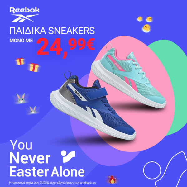 Αγαπημένα και πρακτικά! Τα sneakers θα γίνουν ο καλύτερος φίλος του. Θα τα φοράει στις βόλτες του, στο σχολείο (μόλις με το καλό ανοίξει), στις καλοκαιρινές του διακοπές, κάθε φορά που βγαίνει από το σπίτι. Φρόντισε να αγκαλιάζουν το πόδι του με τον καλύτερο τρόπο, να του εξασφαλίζουν ασφαλές βάδισμα και φυσικά να έχουν τέλεια χρώματα και σχέδιο. Μπλε, γαλάζιο και ροζ συναντιούνται στα παιδικά ζευγάρια της Reebok και κάπως έτσι 24,99€ αρκούν για το πιο sporty δώρο. Αρκεί να τα προμηθευτείς από το e-shop της INTERSPORT. Από την άλλη, τι θα έλεγες να επιλέξεις ένα από τα ζευγάρια της Nike Air Force 1; Και που ξέρεις ίσως καταλήξεις να πάρεις ένα ζευγάρι για την μαμά ή τον μπαμπά του για matchy – matchy εμφανίσεις.