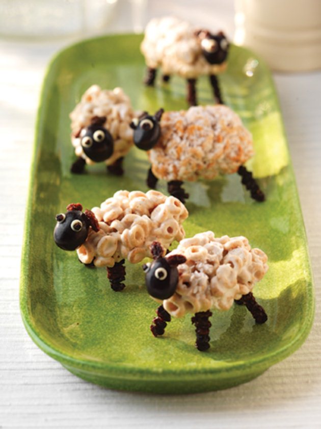 -Βάλε μια ρώγα από μαύρο σταφύλι στην άκρη μιας άλλης οδοντογλυφίδας και μετά πέρασέ τη οριζόντια μέσα στο προβατάκι, ώστε το σταφύλι να είναι το κεφάλι.
