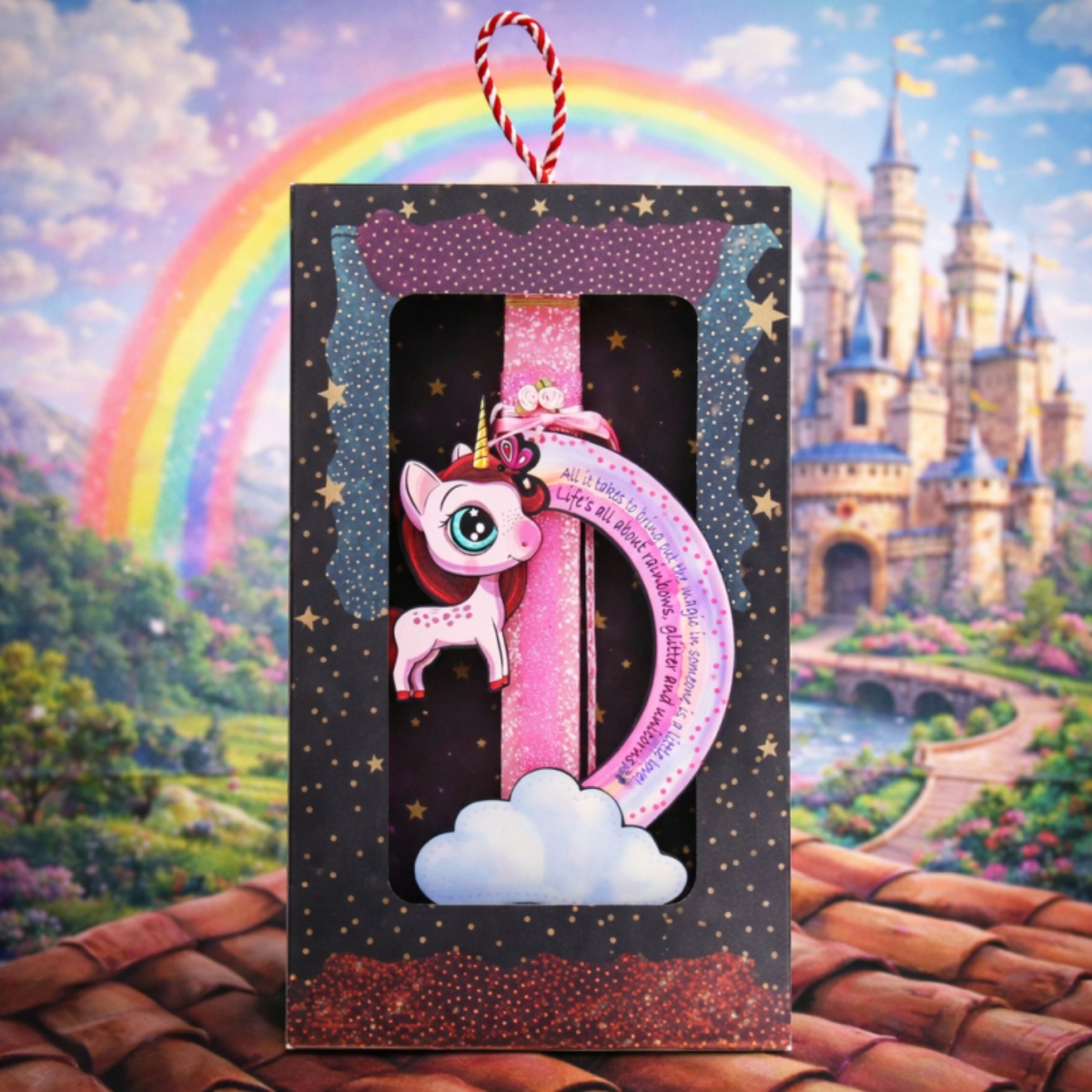 Μια μαγική λαμπάδα που συνδυάζει δύο από τα πιο αγαπημένα στοιχεία των κοριτσιών — μονόκερους και πεταλούδες! Με rainbow λεπτομέρειες που λάμπουν και χρώματα που γεμίζουν φαντασία, αυτή η λαμπάδα είναι φτιαγμένη για κορίτσια που αγαπούν τη μαγεία. Χειροποίητη, 100% ελληνικής παραγωγής, με αρωματικό κερί και πρωτότυπη συσκευασία δώρου — ένα δώρο που θα ξεχωρίσει.