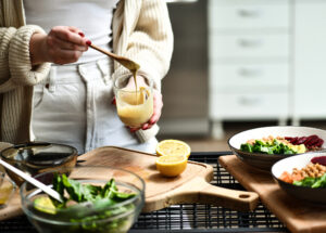 Αν θέλεις να φτιάξεις το πιο υγιεινό dressing, η λύση είναι απλή και γρήγορη: ένα καλό έξτρα παρθένο ελαιόλαδο, λίγο λεμόνι ή ξίδι, και μια πρέζα αλάτι και πιπέρι. Αν όμως θέλεις λίγη παραπάνω γεύση, μπορείς να προσθέσεις ένα κουταλάκι μουστάρδα ή λίγο μέλι. Το αποτέλεσμα είναι ένα dressing που όχι μόνο αναδεικνύει τη γεύση της σαλάτας σου και την κάνει πιο ενδιαφέρουσα, αλλά παράλληλα «βομβαρδίζει» τον οργανισμό σου με θρεπτικά συστατικά.
