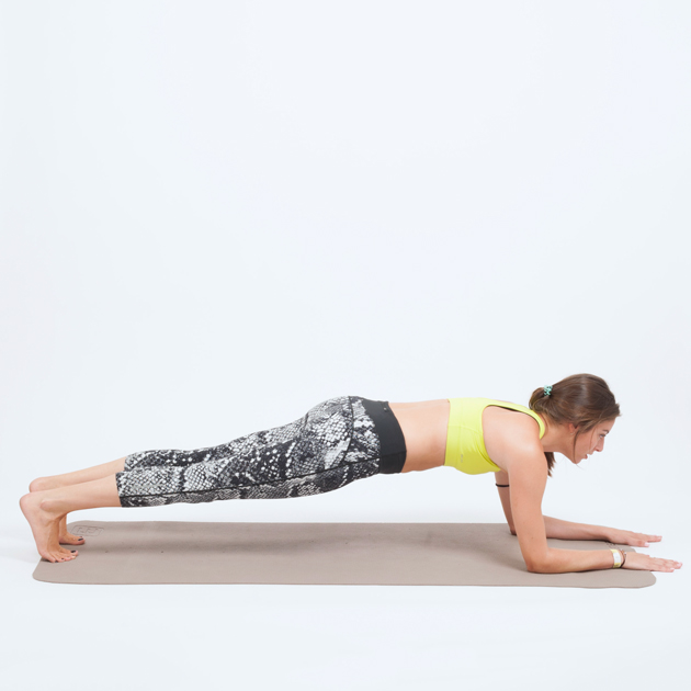 Κάτσε σε στάση σανίδα, με τους αγκώνες και τις μύτες των ποδιών να ακουμπάνε στο έδαφος.