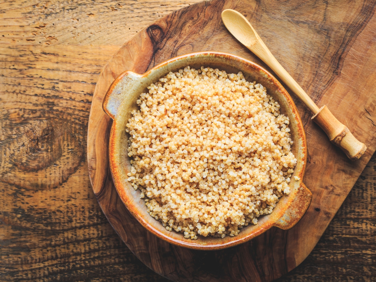 Είναι από τα δημητριακά με τη μεγαλύτερη περιεκτικότητα σε πρωτεΐνη αλλά δεν κάνει και θαύματα. Η φήμη της οφείλεται στο ότι προσφέρει περίπου 8 γραμμάρια πρωτεΐνης ανά φλιτζάνι ενώ σε αντίθεση με πολλά άλλα δημητριακά, είναι πλήρης πρωτεΐνη. Παρ’ όλα αυτά, δεν μπορείς να περιμένεις να καλύψει μόνη της τις ανάγκες σου σε πρωτεΐνη. Ακόμα κι αν τη συνδυάσεις με ένα αυγό και λίγα σοταρισμένα λαχανικά στο πλάι, το γεύμα θα σου δώσει συνολικά περίπου 14 γραμμάρια πρωτεΐνης. Η κινόα αξίζει σίγουρα μια θέση στην κουζίνα σου: προσφέρει πέντε γραμμάρια φυτικών ινών ανά φλιτζάνι και είναι πλήρης φυτική πρωτεΐνη. Συνδύασέ την με άλλες πηγές πρωτεΐνης για να την εκμεταλλευτείς στο έπακρο όπως για παράδειγμα σε μια χορταστική σούπα με φασόλια.
