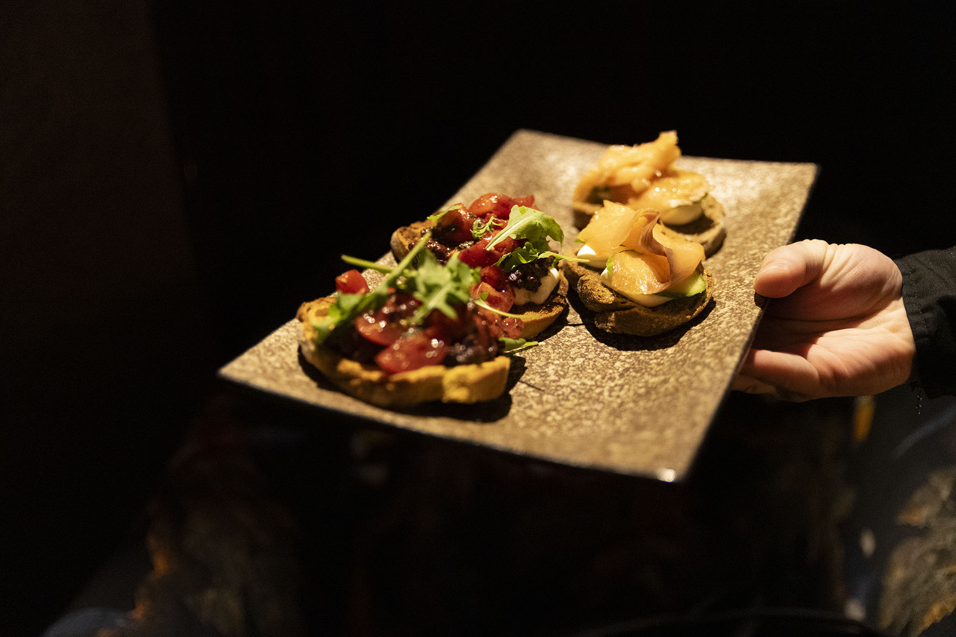Το μενού λειτούργησε ως γευστική αφήγηση, και οι finger food δημιουργίες της βραδιάς ανέδειξαν τα προϊόντα της SeaCrets Inspirations. Από τα Olive Martinis και τα Aperitivo bites με ελιές γεμιστές με αμύγδαλο και πιπεριά, έως τα Herbal Spritzes με τσάι του βουνού και μέλι, η εμπειρία εξελίχθηκε σε ένα γευστικό μωσαϊκό: μπρουσκέτες με πάστα ελιάς, προσούτο και ρόκα, λαβράκι ταρτάρ με ανθό αλατιού, πίτσα με λάδι τρούφας και μοσχάρι με αρωματικό βαλσάμικο και βότανα. Το φινάλε ήρθε με blinis και χειροποίητες μαρμελάδες με κατσικίσιο τυρί, συνοδευμένα από ένα ποτήρι λευκό Ασύρτικο.