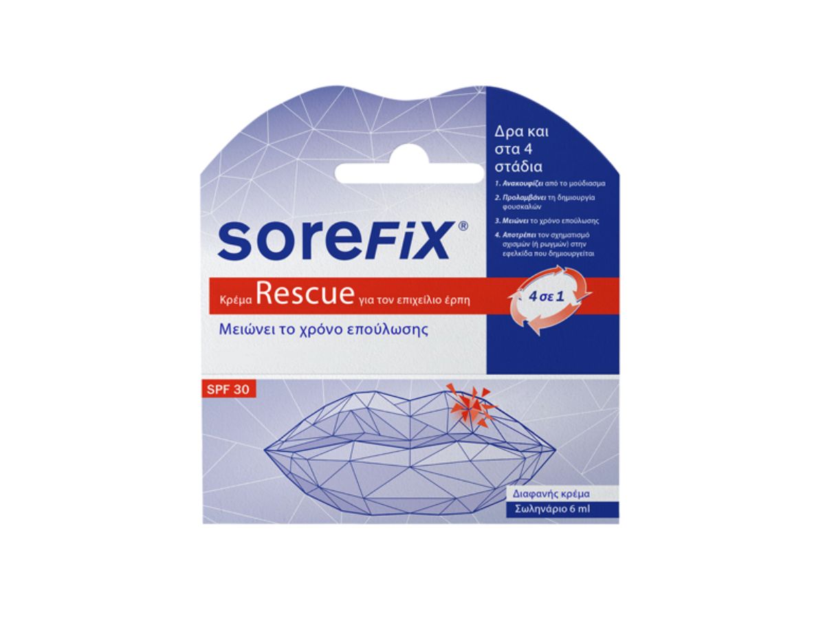 - Sorefix Rescue: Θεραπεία που δρα σε όλα τα στάδια του επιχείλιου έρπητα.