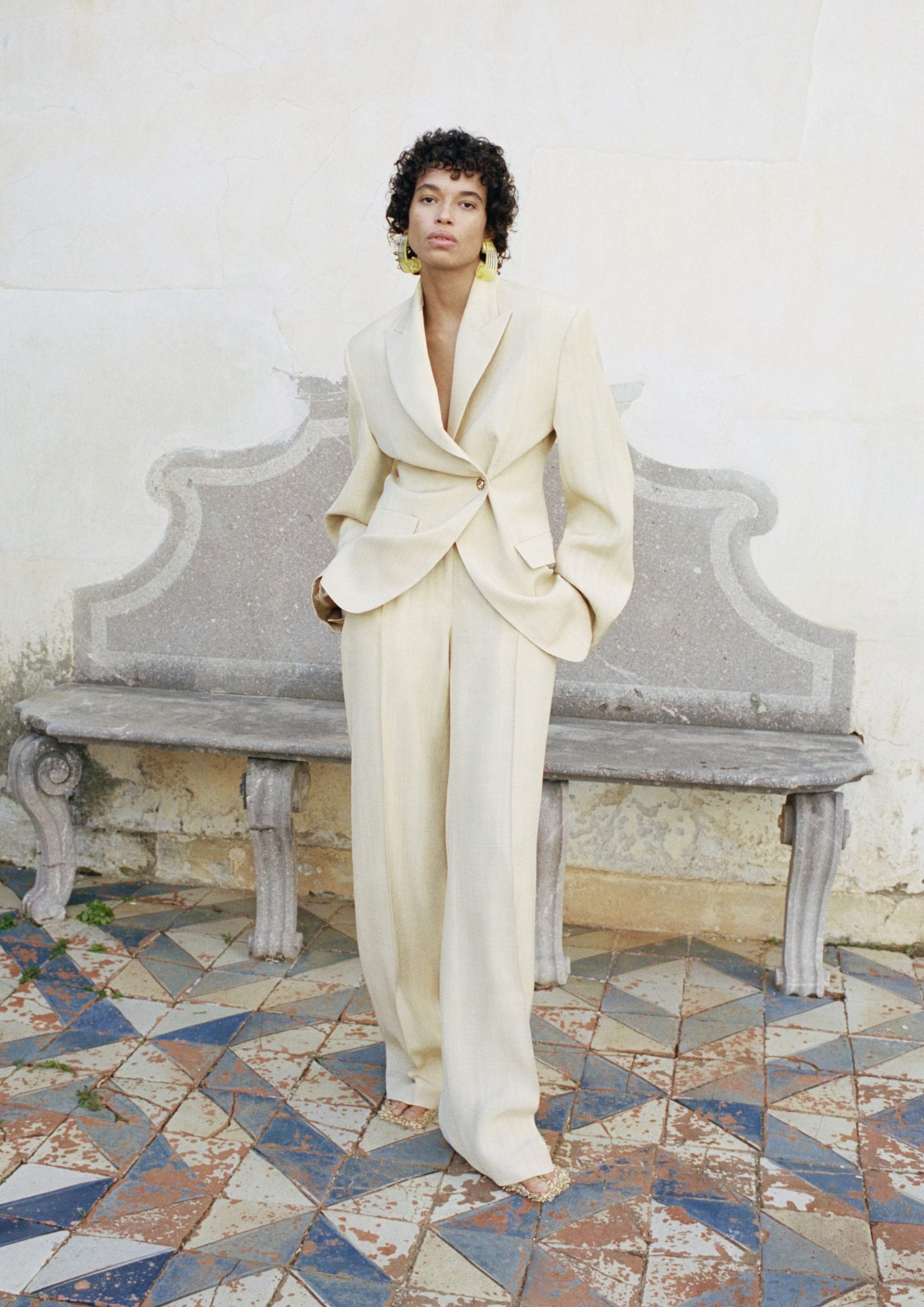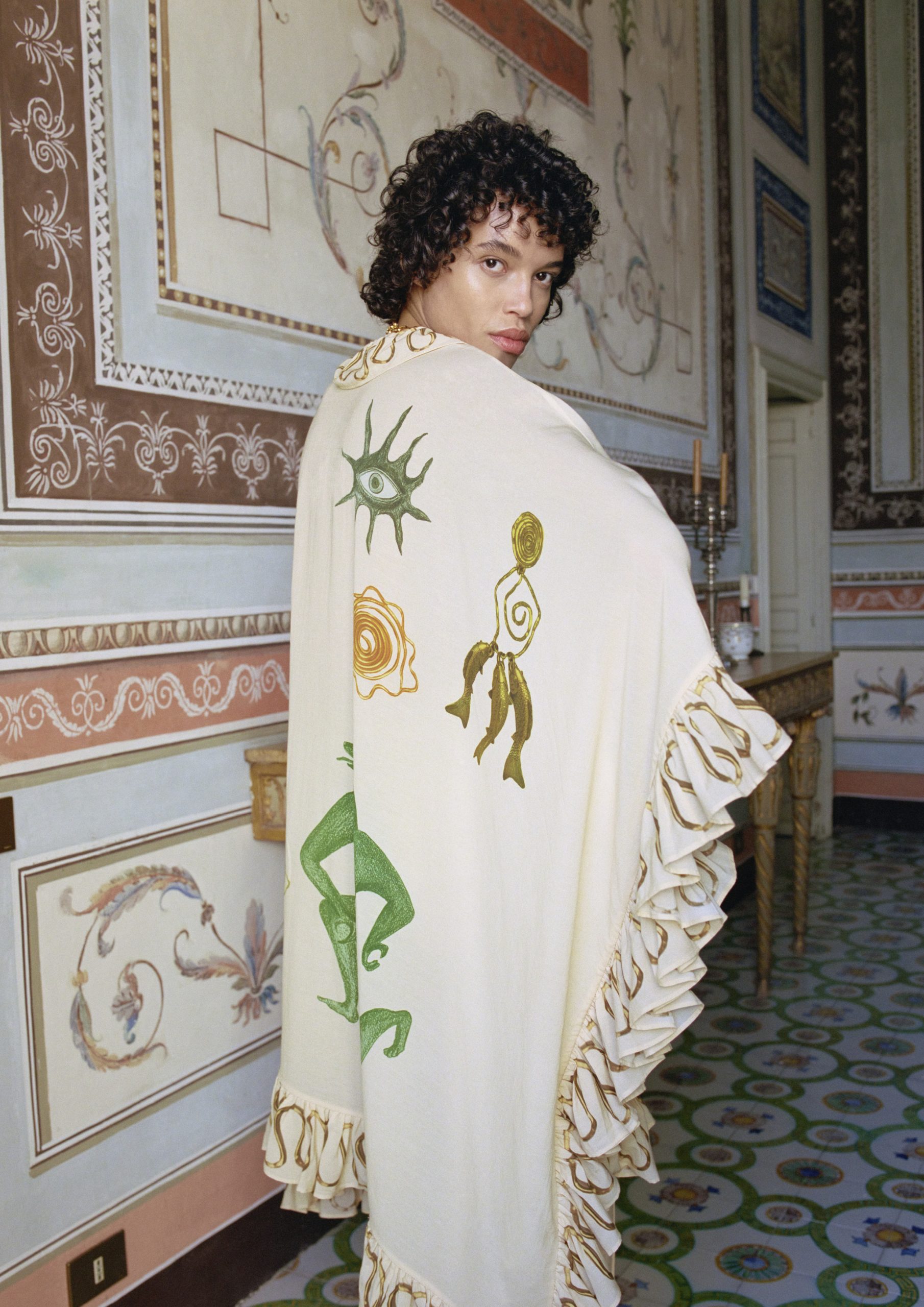 Τα βασικά κομμάτια είναι τολμηρά και ονειρικά. Ένα βραδινό φόρεμα με λαιμόκοψη σε σχήμα V και ένα oversized κοστούμι σε μελί χρώμα ξεχωρίζουν. Ένα λευκό σετ αποτελούμενο από μια φούστα με κυματιστό στρίφωμα και τοπ ενθαρρύνουν τις τολμηρές εμφανίσεις. Τη συλλογή συμπληρώνουν, ένα μαύρο μάξι καφτάνι με βολάν για όλες τις ώρες μαζί με ένα σετ εμπριμέ μεταξωτό πουκάμισο και σορτς, που μαγνητίζει τα βλέμματα με βελονάκι και εμπριμέ μεταλλικά μαγιό. Τα αξεσουάρ επίσης επεκτείνουν τη μαξιμαλιστική διάθεση, με χρυσά δερμάτινα σανδάλια με πυκνή υφή και μια ασορτί μίνι τσάντα και κοσμήματα με χάντρες.