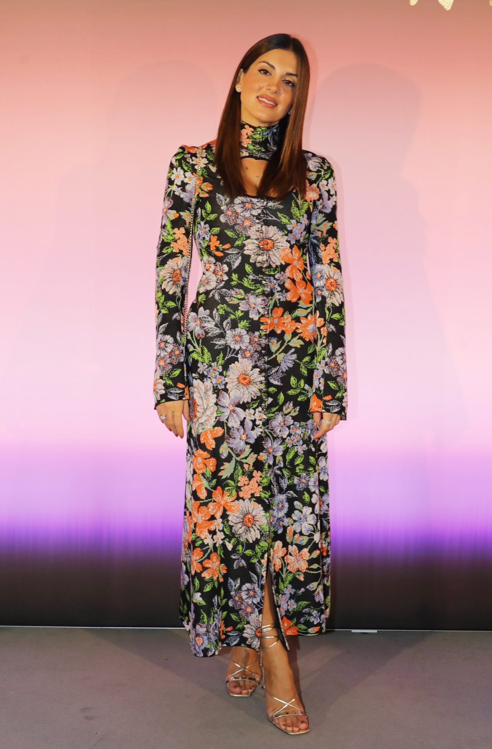 Η Σταματίνα Τσιμτσιλή με floral ντραπέ φόρεμα που είχε cut out στο στήθος.