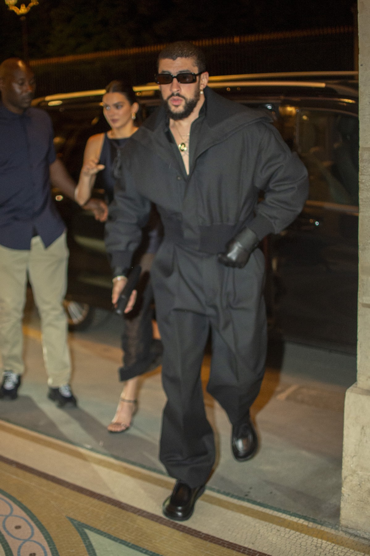 Kendall Jenner and Bad Bunny coming out the FWRD event in Paris