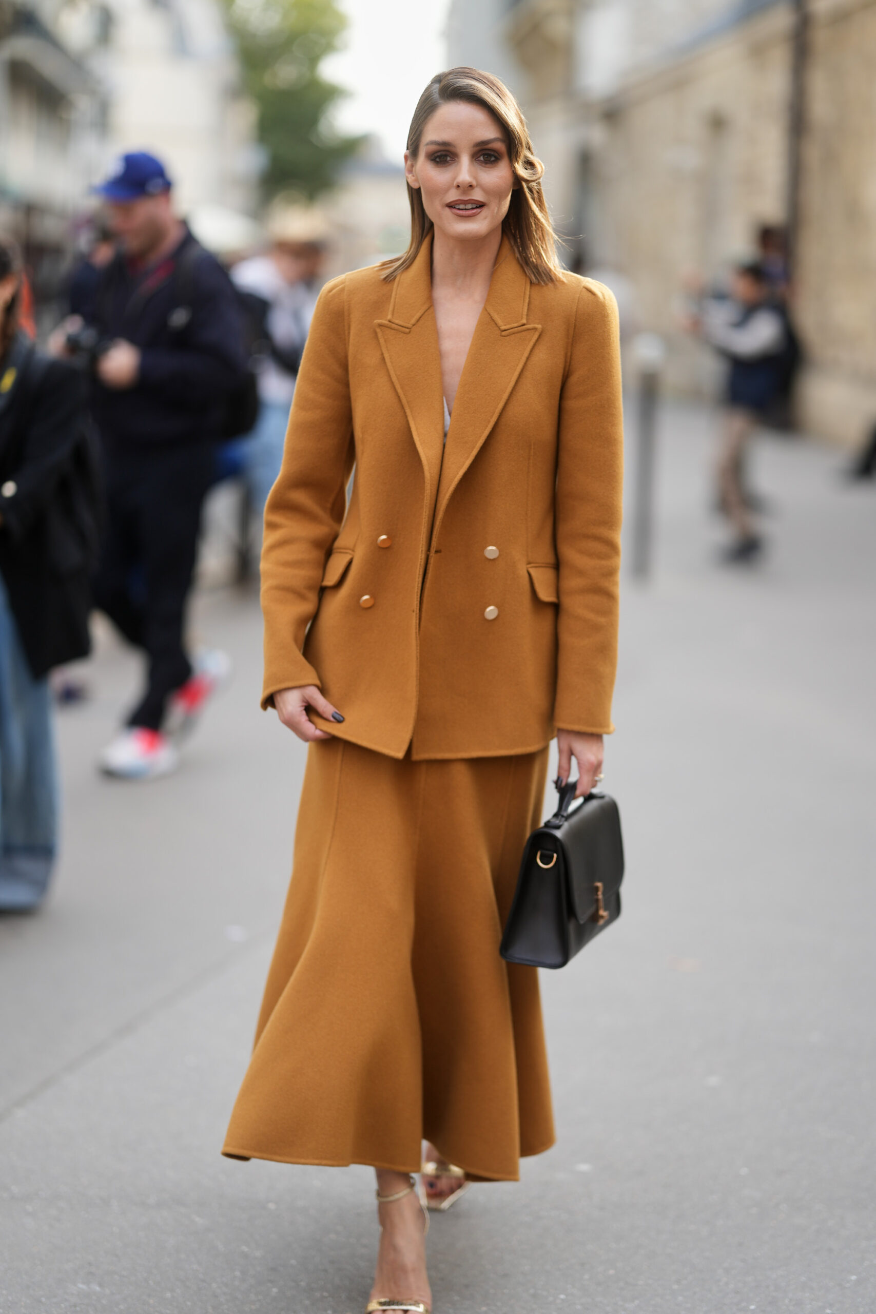 H Οlivia Palermo με ταγέρ σε mustard απόχρωση και metallic πέδιλα είναι απλά τέλεια!