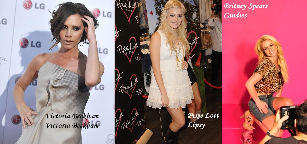 Η Victoria βρέθηκε να κάνει αυτό για το οποίο είχε γεννηθεί πολλά χρόνια μετά από καριέρα ποπ σταρ και καριέρας συζύγου. Μέσα από το σχεδιασμό της συλλογής της “Victoria Beckham” ανακάλυψε πολλά πράγματα όπως ας πούμε το ότι είναι ένας gay άνδρας στο σώμα μιας γυναίκας. Αυτή τη στιγμή η σειρά περιλαμβάνει μόνο φορέματα και γυαλιά ηλίου αλλά σύντομα θα ανοιχθεί στην αγορά του τζιν! Η Pixie Lott είναι από τις πιο νεαρές σε ηλικία αφού πριν προλάβει να ξεκινήσει την καριέρα της στη μουσική βρέθηκε να υπογράφει την σειρά Lipsy. Το πιο σημαντικό ατού της σειράς δεν είναι άλλο από τις πολύ καλές τιμές. Η Britney Spears έχει μια girly δύναμη που την φέρνει στο επίκεντρο της προσοχής με όλες τις κινήσεις της. Η σειρά ρούχων Candie’s την έφερε στην πρώτη θέση της λίστας των celebrity με τα περισσότερα έσοδα για το 2009. Όχι και άσχημα…