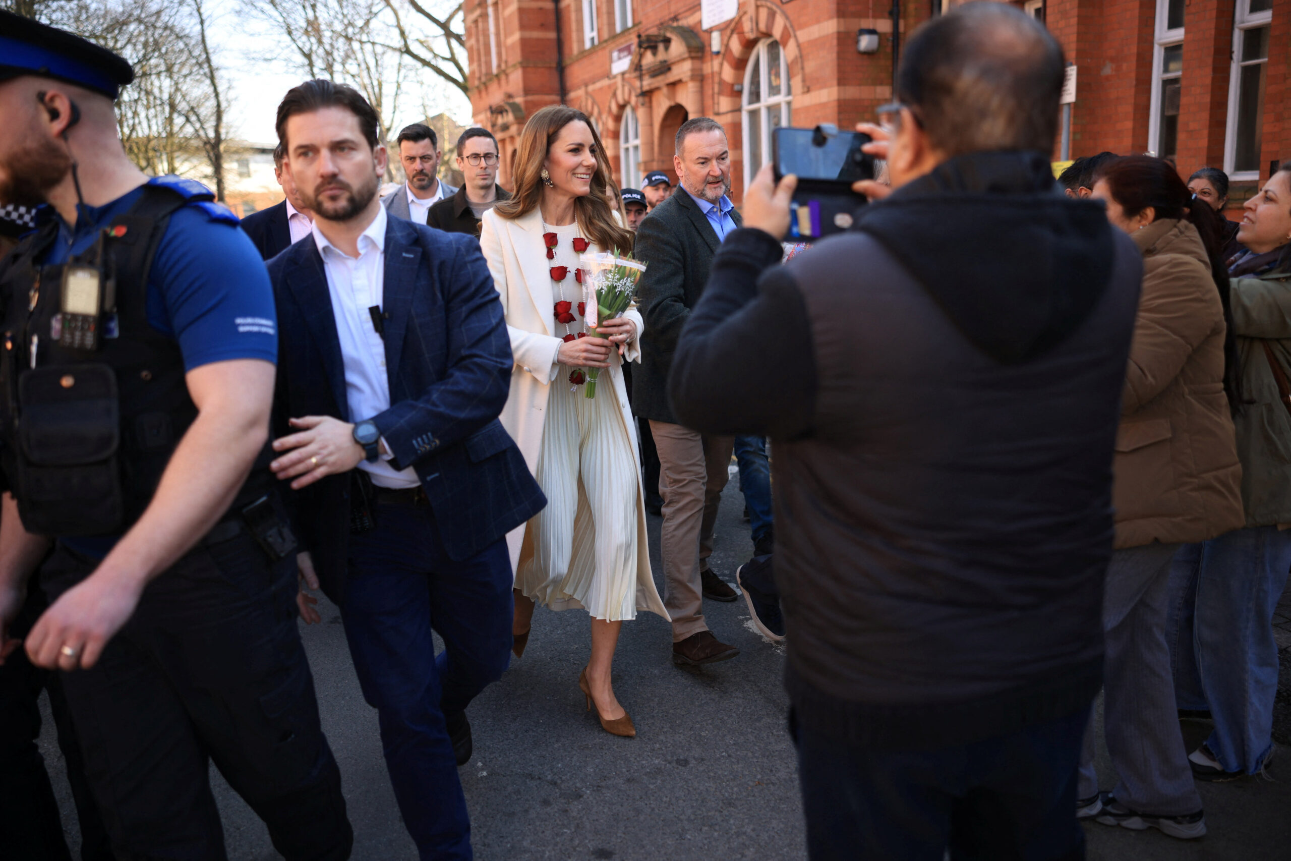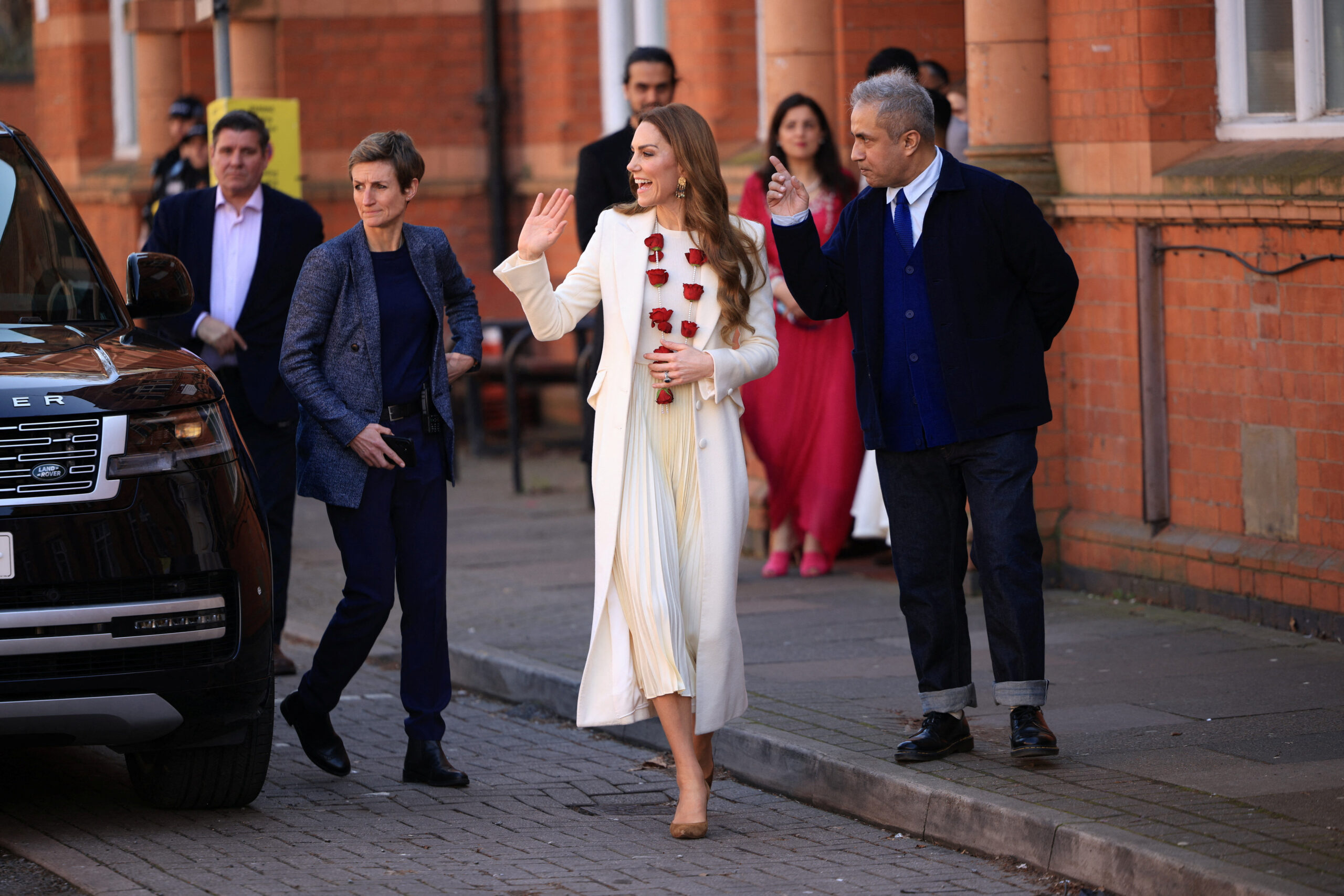 Στη συνέχεια, η Κέιτ περπάτησε στη διάσημη Golden Mile Leicester, έναν ζωντανό δρόμο γεμάτο καταστήματα κοσμημάτων, σάρι και αυθεντικής νοτιοασιατικής κουζίνας. Εκεί επισκέφθηκε οικογενειακές επιχειρήσεις της περιοχής, δοκίμασε τσάι και έκανε στάση στο γνωστό κατάστημα σάρι Ladlees. «Είναι μια πραγματική γιορτή χρωμάτων, έτσι δεν είναι;» σχολίασε χαμογελώντας καθώς περιεργαζόταν τα πολύχρωμα υφάσματα.