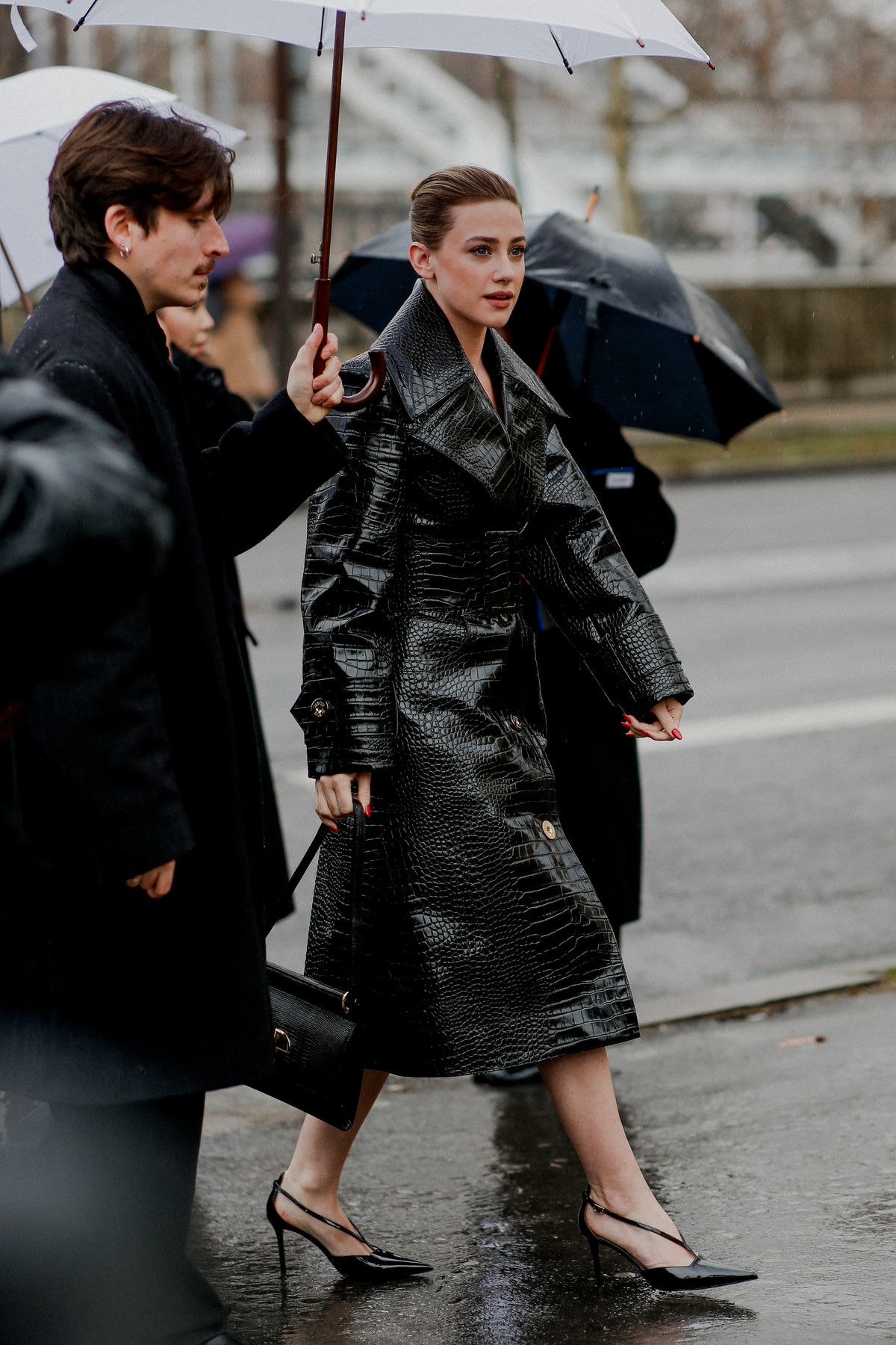 H Lili Reinhart με epic croco καμπαρντίνα.