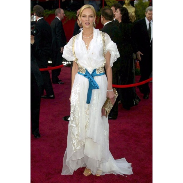 Uma Thurman Christian Lacroix μπορεί να είναι, αλλά αυτό είναι μόνο ένα παράδειγμα που αποδεικνύει ότι ορισμένα φορέματα δεν μεταφράζονται πάντα απευθείας από το catwalk στο κόκκινο χαλί. Το συγκεκριμένο φαίνεται να είναι λίγο μεγάλο, λίγο μακρύ, και λίγο υπερβολικό. Και σίγουρα έχουμε ένα πρόβλημα με τη ζώνη που συνεχίζεται ως τιράντες. (2004)