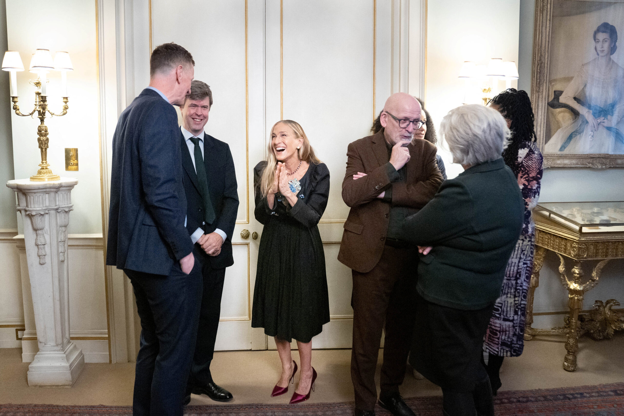 Η βασίλισσα Καμίλα υποδέχθηκε τη Sarah Jessica Parker με θερμά λόγια και χαμόγελα, ενώ οι δύο γυναίκες αντάλλαξαν απόψεις για τη λογοτεχνία, την τέχνη και τη μόδα. Το κλίμα ήταν φιλικό και ανεπιτήδευτο, με τη βασίλισσα να εκφράζει τον θαυμασμό της για τη διαχρονική κομψότητα και το ήθος της ηθοποιού.
