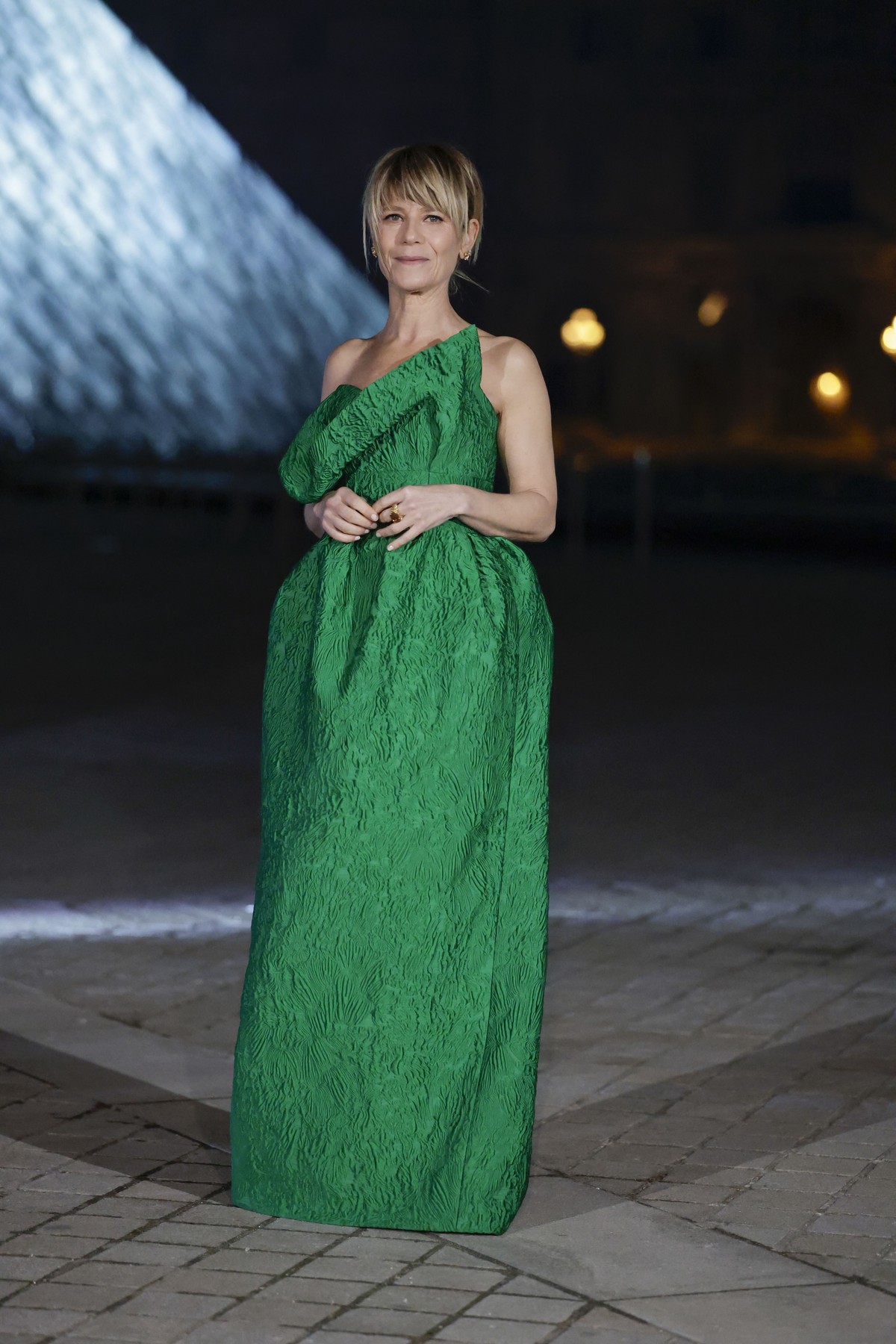 Η Marina Fois με one shoulder gown σε πράσινο χρώμα.