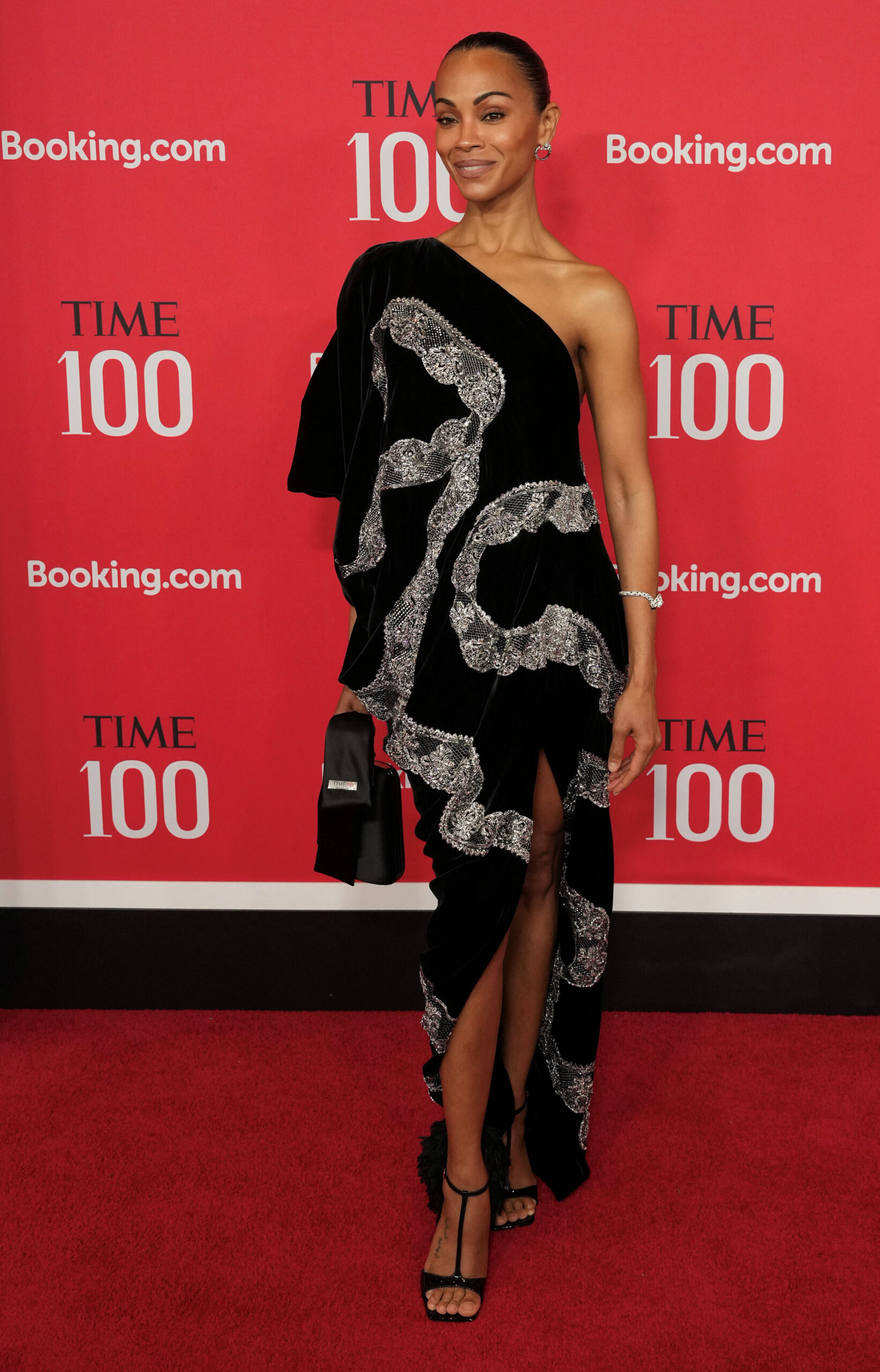 Η Zoe Saldana επέλεξε ένα one-shoulder μαύρο φόρεμα, αποδεικνύοντας για ακόμη μία φορά τη δύναμη του minimal chic. Τα strappy πέδιλα και η μικρή μαύρη τσάντα ολοκλήρωσαν ένα άψογα ισορροπημένο look.