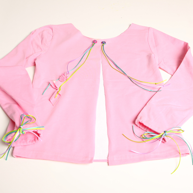 Τις λωρίδες που έχουμε κόψει στα μανίκια, τις δένουμε σε μικρούς φιόγκους.