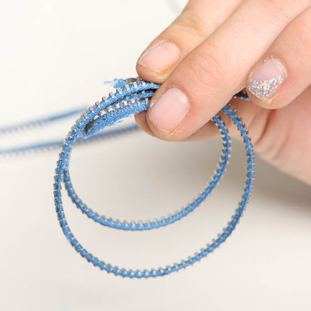 Στη συνέχεια πιάνεις τα δύο επιμέρους κομμάτια του φερμουάρ όπως στη φωτογραφία.