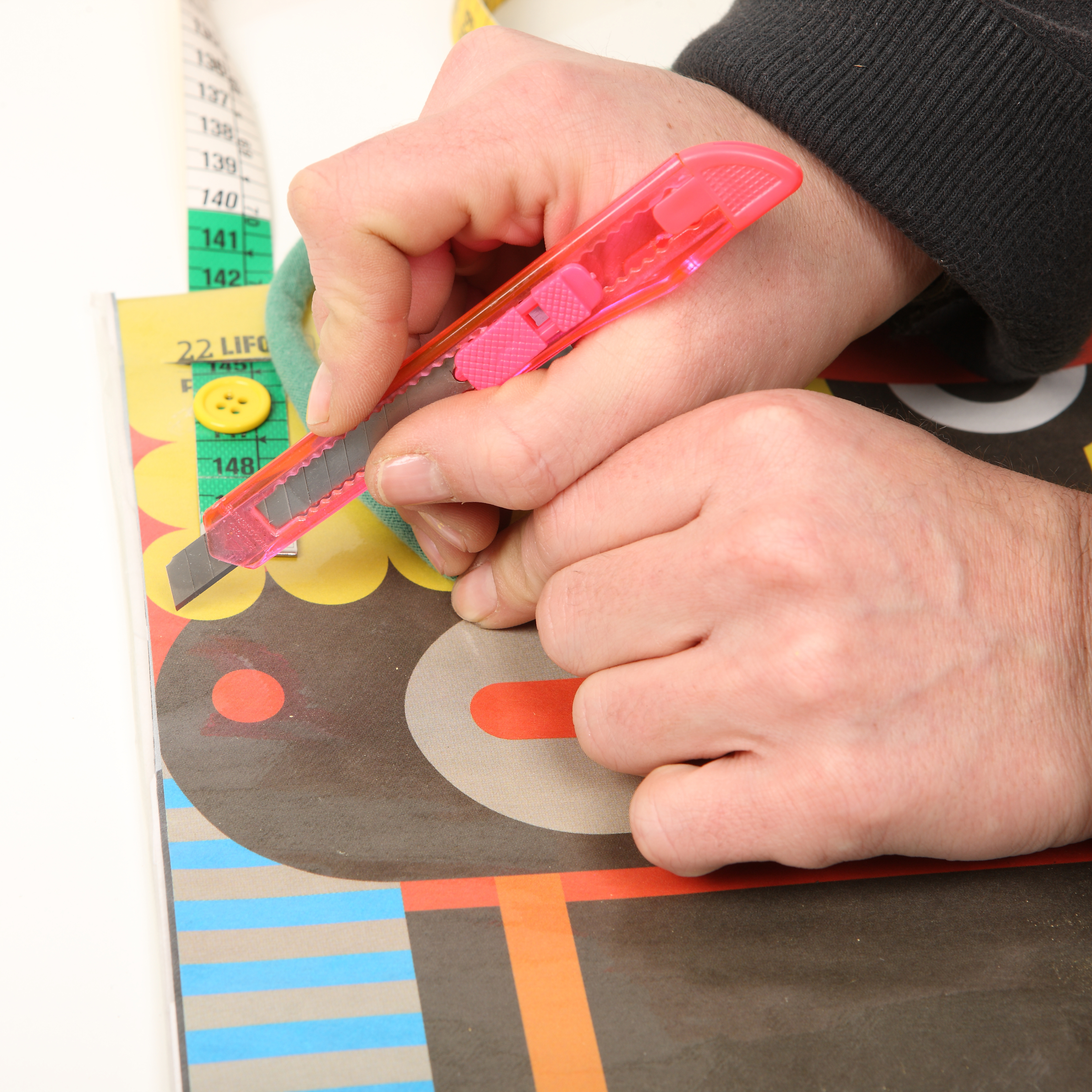 Δημιουργούμε δύο εγκοπές στην αριστερή και στη δεξιά γωνία και από εκεί περνάμε τις άκρες της μεζούρας.