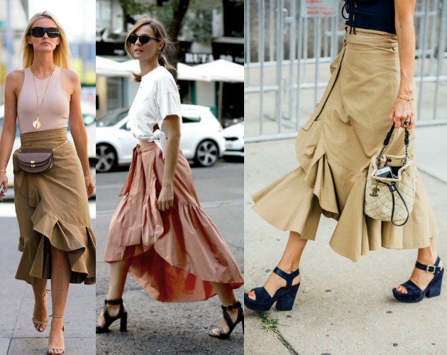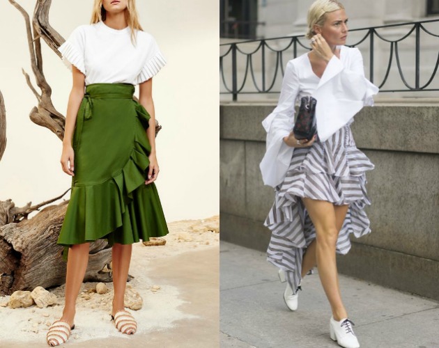 Δεν είναι mini, ούτε maxi. Μπορεί να είναι κοντή μπροστά, μακριά πίσω ή και ασύμμετρη. Δεν έχει prints είναι μονόχρωμη, αλλά έχει ένα βασικό χαρακτηριστικό: βολάν! Ναι τα αγαπάμε τα βολάν…