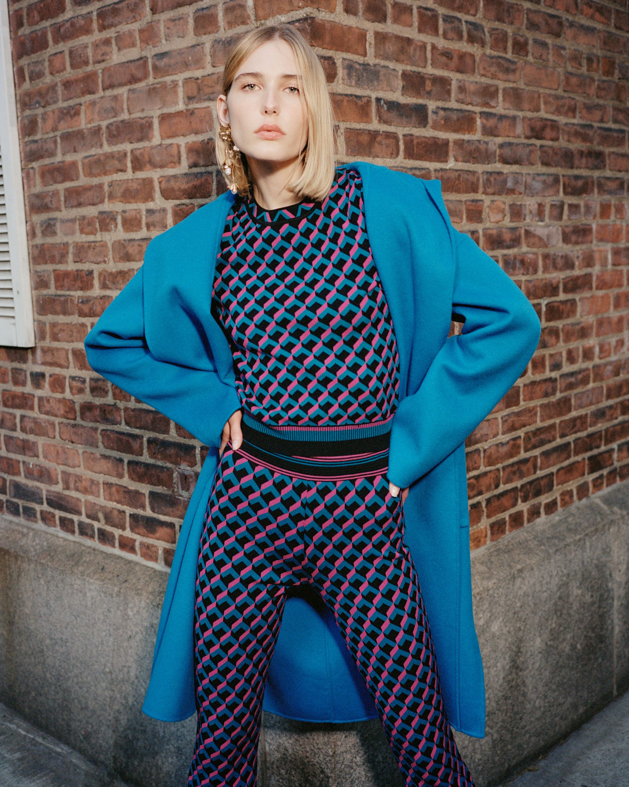 Η συλλογή μεταξύ άλλων αποτελείται από jacquard κοστούμι που προσφέρει μια tailored αισθητική, ανάλαφρα πλεκτά και τα αγαπημένα wrap dresses.