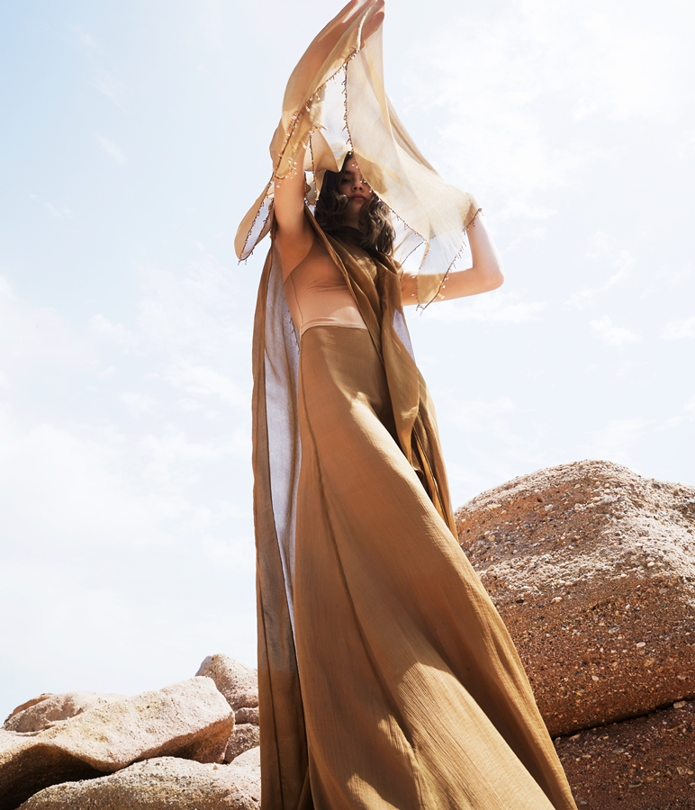Το ντύσιμο είναι προέκταση του γενετικού μας κώδικα. Δηλώνει την παρουσία μας στον χώρο και τον χρόνο. Η Liana Camba εμπνεύστηκε μία άχρονη συλλογή, ρούχα που φοριούνται στη γη αλλά έρχονται από μακριά. Δεν υπάρχει τόπος, ούτε ώρα, υπάρχει μόνο η ανθρώπινη φιγούρα.