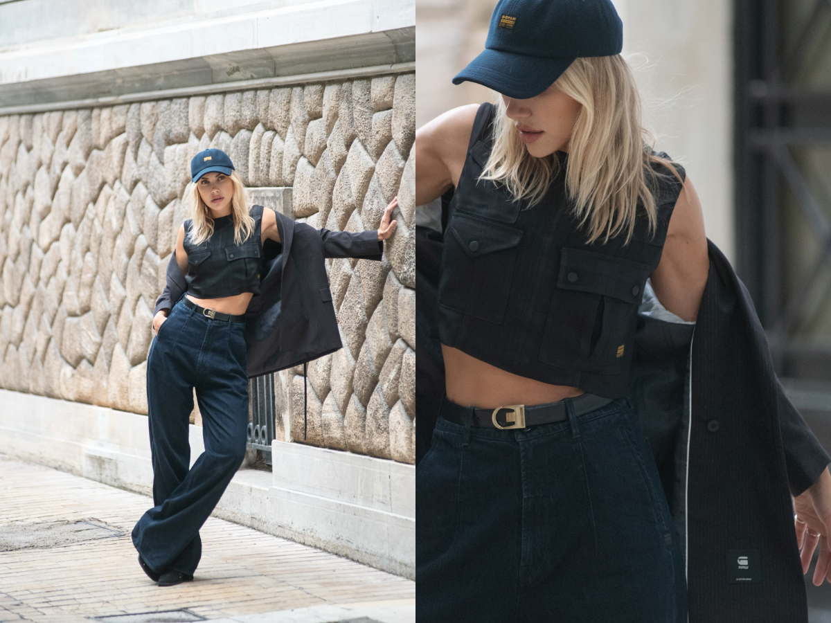 Για την Κάτια, το denim είναι mindset – και το look της το αποδεικνύει. Επιλέγει denim πανωφόρι, crop cargo top και wide-leg jean, ολοκληρώνοντας την εμφάνιση με ένα baseball hat της G STAR. Urban, σύγχρονο και γεμάτο attitude. Ένα σύνολο που όλες θέλουμε να αντιγράψουμε άμεσα.