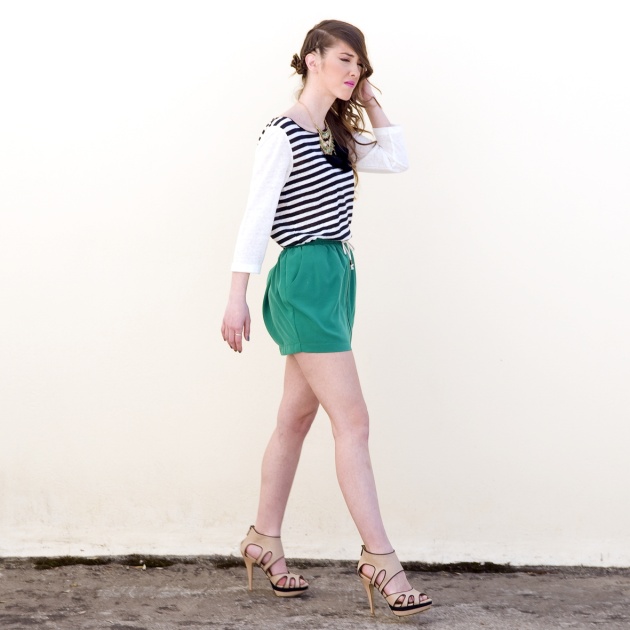 Σε αυτήν τη φωτογραφία βλέπουμε τη Μαρία με ένα πιο βραδυνό στυλ! Το φούξια σορτς δίνει ένταση και χρώμα στο σύνολο και είναι ιδανικό για καλοκαιρινές στυλάτες εμφανίσεις ιδαίτερα όταν είναι συνδυασμένο με ψηλοτάκουνα όπως εδώ!