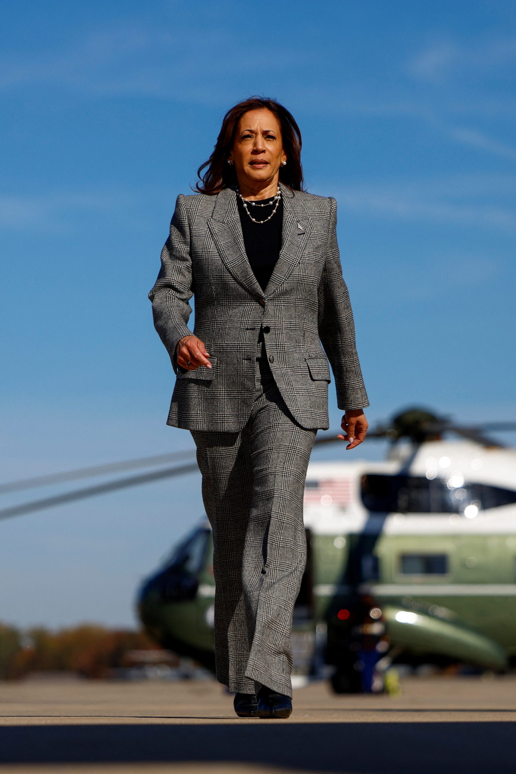 Το στιλ της Κamala Harris είναι η επιτομή του Power dressing, με κλασικά κομμάτια, statement κουστούμια,κασμίρ πουλόβερ και shirt tops! Όλο αυτό το διάστημα η Kamala Harris επιλέγει για τις εμφανίσεις της σύνολα με βάση αυτό το στιλ, αλλά δεν παραλείπει να προσθέτει το αγαπημένο της αξεσουάρ: Ένα κολιέ με πέρλες! Αυτό το αγαπημένο της κόσμημα λοιπόν το φοράει στο repeat και μάλιστα φαίνεται να είναι και το γούρι της γιατί δεν το αποχωρίζεται σχεδόν σε καμία εμφάνιση της!
