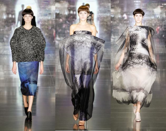 Τα χρώματα σκούρα, μουντά κι όπως η ίδια δήλωσε αυτός ήταν και ο σκοπός της, να εξελίξει τα σχέδια και να παγώσει για λίγο τα έντονα χρώματα στα ρούχα. Τα prints αυτή τη φορά είναι πιο σκοτεινά, παραπέμπουν σε σκηνικό από θρίλερ με το φως το φεγγαριού να φωτίζει ελάχιστα το μαύρο και γκρι χρώμα.