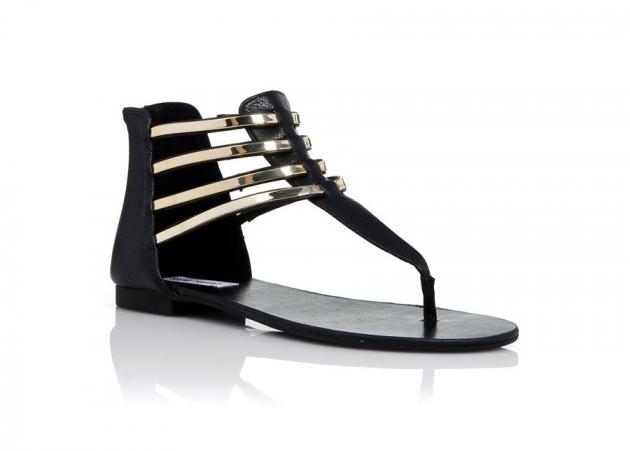 Ένα ζευγάρι μαύρα σανδάλια με χρυσές μεταλλικές λεπτομέρειες από την εταιρεία Steve Madden που δεν θα αποχωρίζεσαι! Φόρεσε τα με σορτς και ένα κιμονό το πρωί και με ένα μίνι μαύρο φόρεμα και χρυσά bracelets για μια εντυπωσιακή βραδινή εμφάνιση.