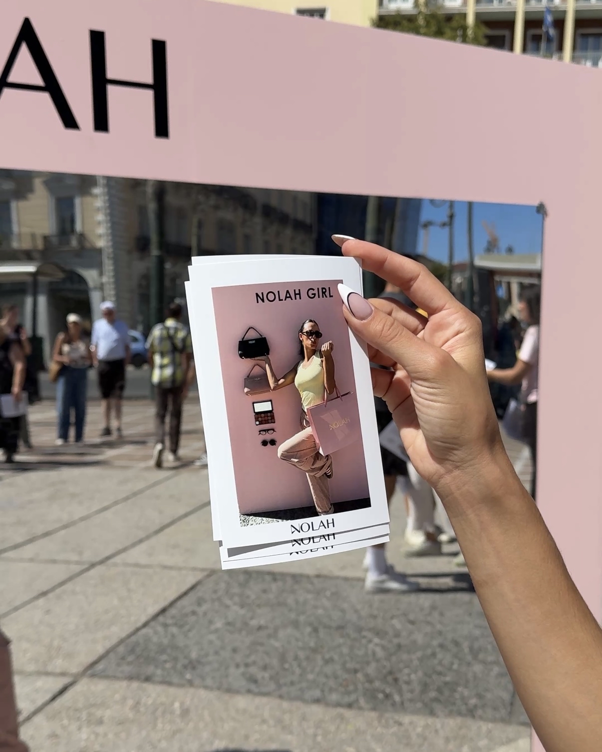 Στην καρδιά του event βρισκόταν το πιο εντυπωσιακό mirrorbooth που έχεις δει ποτέ: μία τεράστια σακούλα NOLAH, που δεν άφησε κανέναν να αντισταθεί σε φωτογραφίες γεμάτες στυλ και παιχνιδιάρικη διάθεση.
