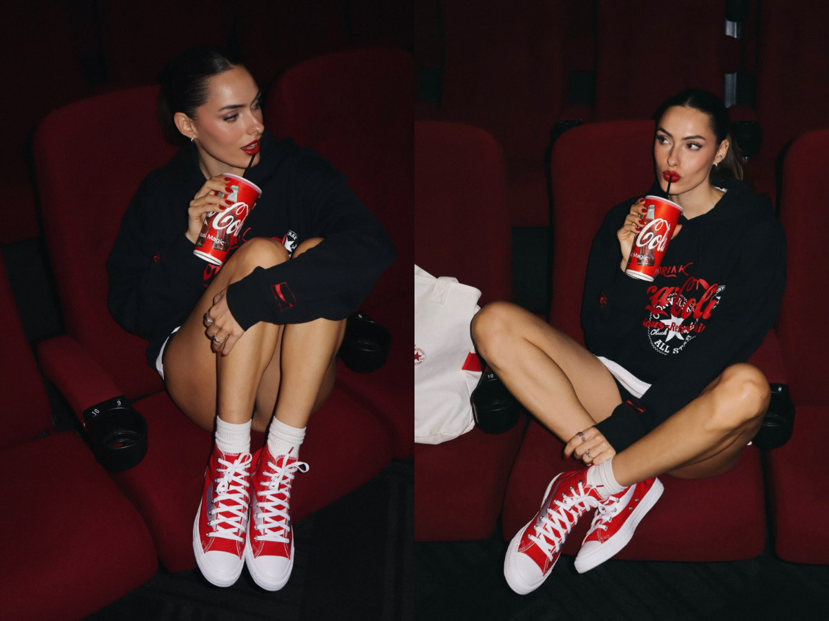Η Όλγα λατρεύει το σινεμά, γι’ αυτό και η νέα συλλογή Converse x Coca-Cola είναι λες και φτιάχτηκε για εκείνη. Το σχέδιο παραμένει πιστό στις κλασικές γραμμές του Converse, αλλά έχει αυτή τη μικρή pop ανατροπή που το κάνει ξεχωριστό.