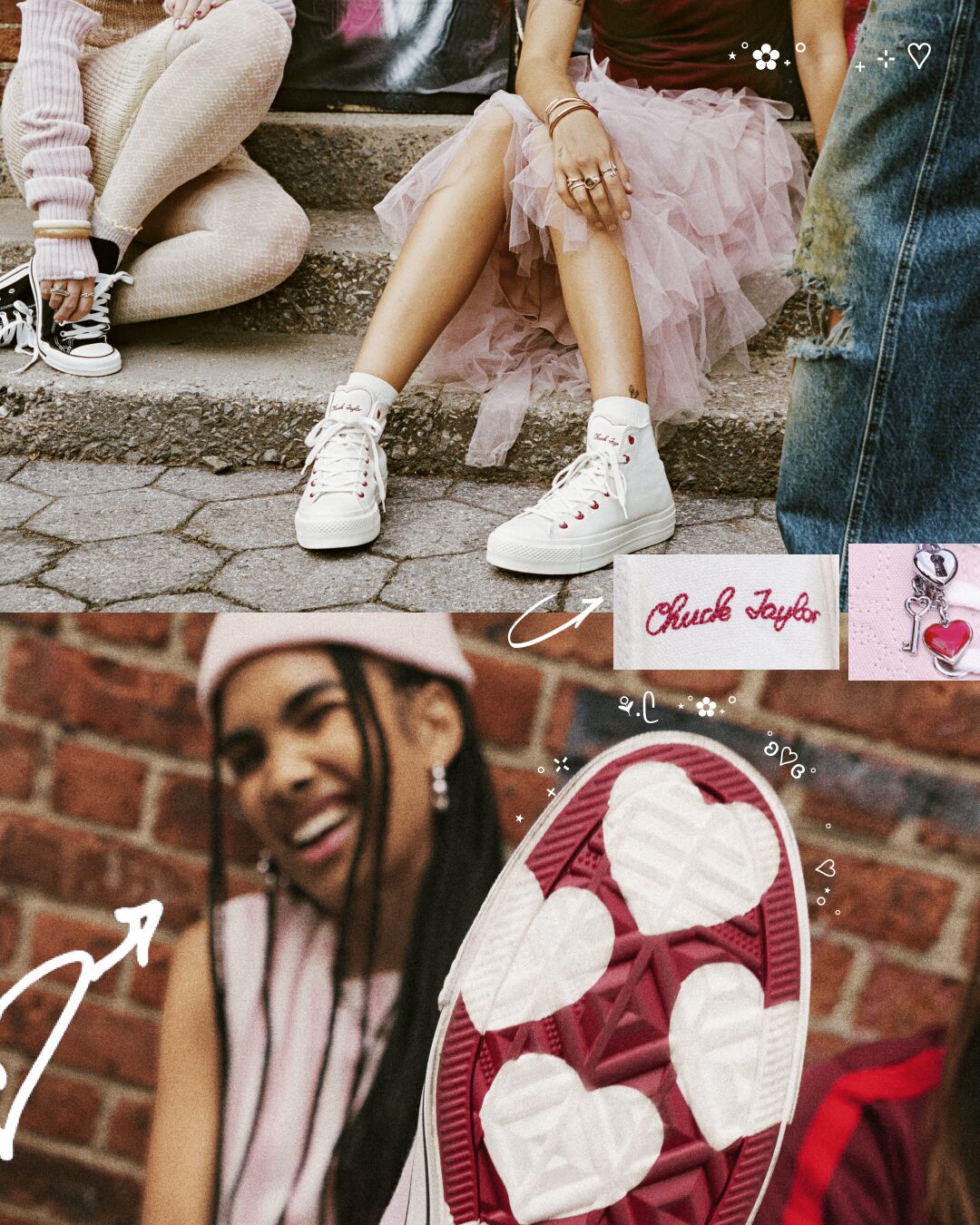 Για την Converse, το Chuck είναι ένας καμβάς αυτοέκφρασης, ένα σύμβολο προσωπικού στυλ που εξελίσσεται μαζί με εκείνους που το φορούν. Στη συλλογή Chucks in Love, το συναίσθημα μεταφράζεται σε design: joyful και απόλυτα wearable.