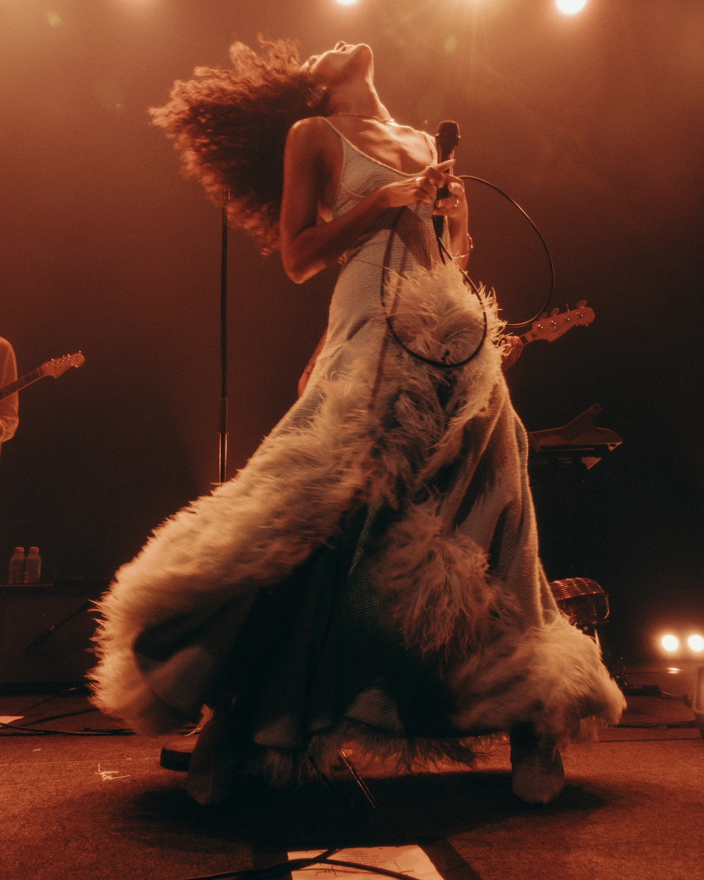 Η on-stage γκαρνταρόμπα της περιλαμβάνει δημιουργίες από οίκους όπως Miu Miu, Maison Valentino, Etro και Kenzo. Επιλογές υψηλής μόδας που επιβεβαιώνουν ότι η Dean δεν είναι απλώς μια ανερχόμενη τραγουδίστρια, αλλά μια σύγχρονη δύναμη με ξεκάθαρη αισθητική ταυτότητα.