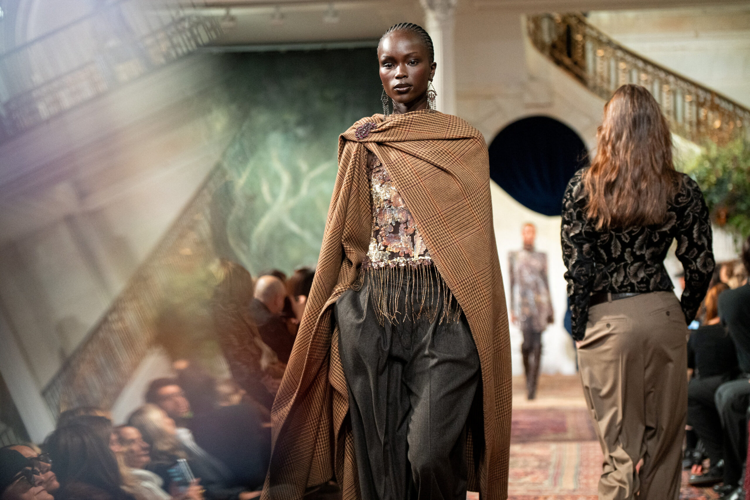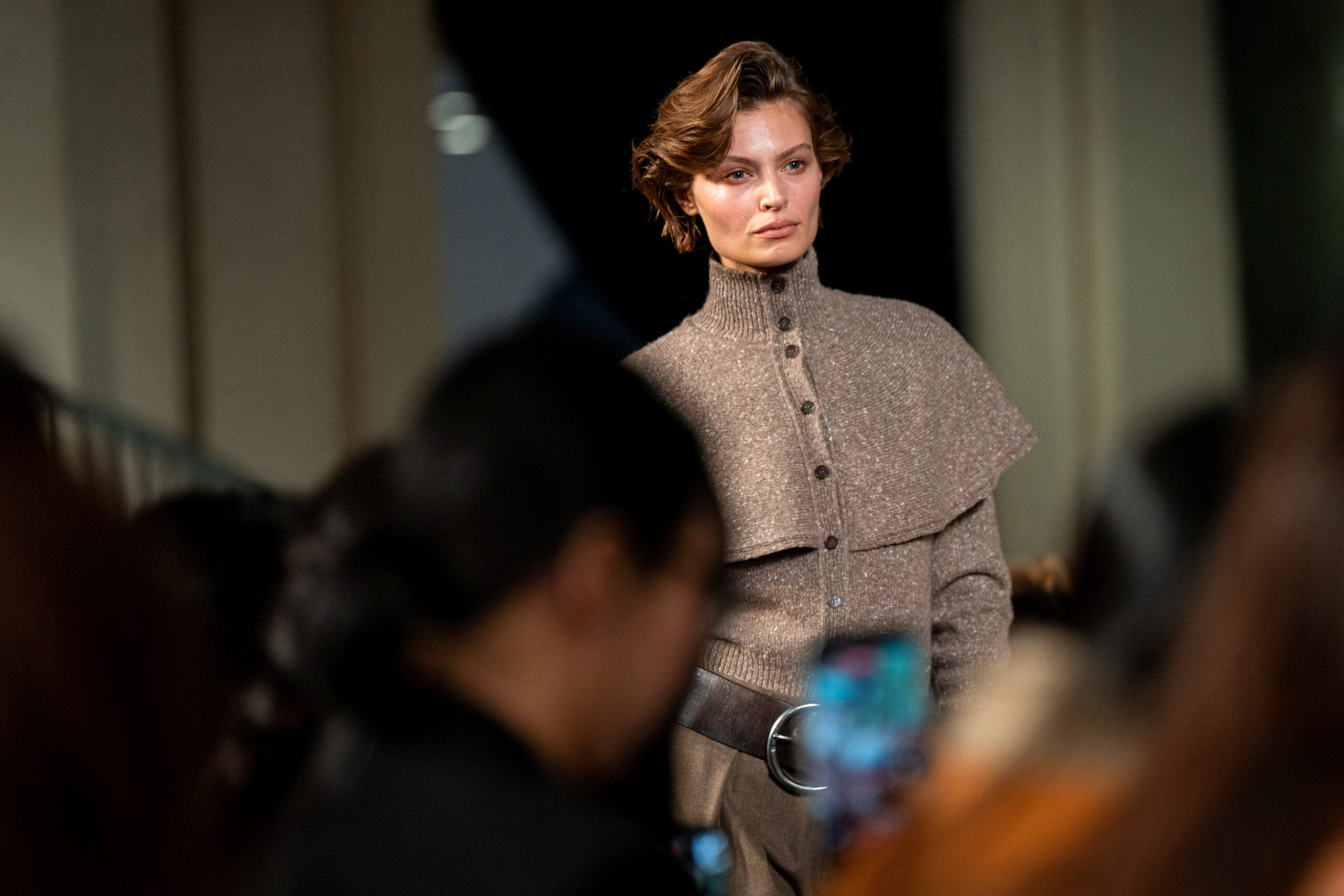 Η χειροτεχνία και η προσοχή στη λεπτομέρεια ήταν εμφανείς σε κάθε ραφή, σε κάθε layering, σε κάθε υλικό που έδενε αρμονικά με το επόμενο.Ταρτάν σακάκια, πλεκτά με υφή, tailored παντελόνια ιππασίας, ψηλές μπότες και δερμάτινες ζώνες συνέθεσαν ένα refined country ύφος, όπου η παράδοση συναντά τη σύγχρονη θηλυκότητα.