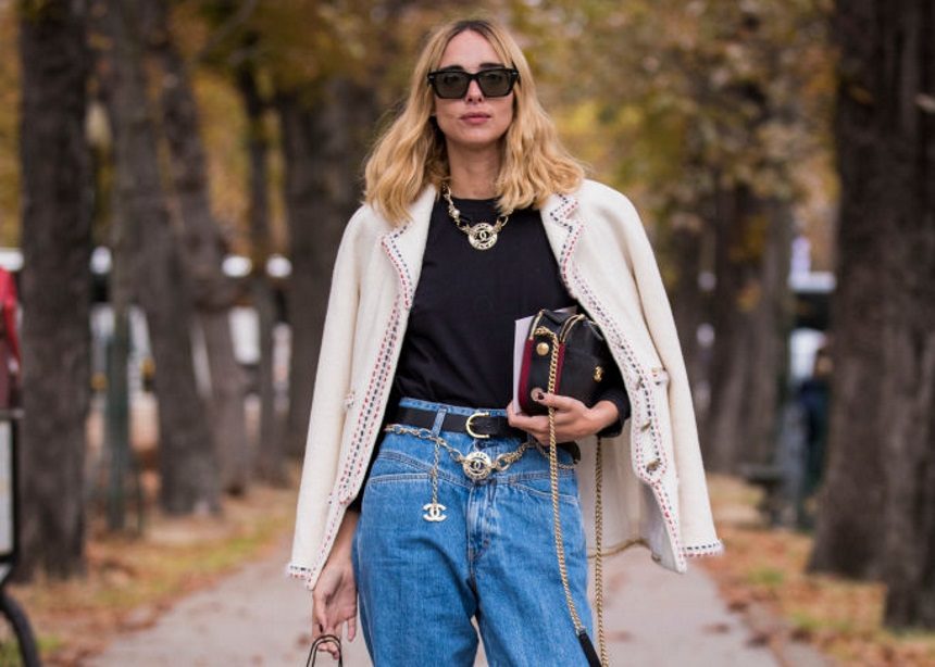 Το mom jeans μπορεί να αποκτήσει κομψό ύφος, αν το συνδυάσεις με τα κατάλληλα κομμάτια. Επέλεξε να ρίξεις ένα tweed σακάκι στους ώμους και να ολοκληρώσεις με slingbacks σε neutral και μαύρο χρώμα.