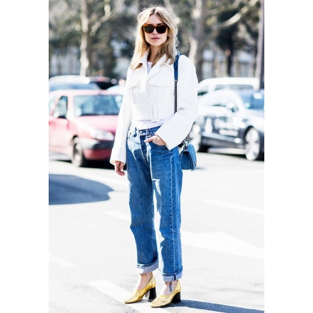 Διάλεξε ένα λευκό cropped jacket και ταίριαξέ το με ένα οοσε jeans και χρυσά αξεσουάρ.