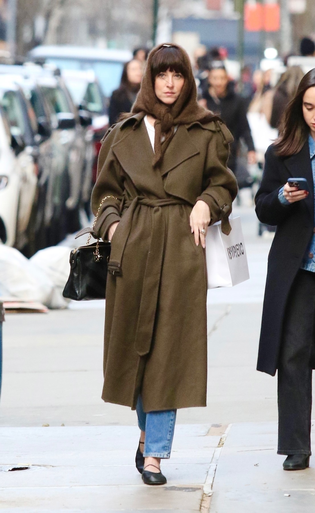 Η Dakota Johnson έκανε πρόσφατα μια χαλαρή βόλτα για shopping στη Νέα Υόρκη και, όπως πάντα, κατάφερε να μας χαρίσει ένα από τα πιο κομψά χειμερινά looks της σεζόν. Η διάσημη ηθοποιός επέλεξε ένα  παλτό The Row, το οποίο συνδύασε με κλασικό τζιν και μαύρες δερμάτινες μπαλαρίνες — ένα outfit που ισορροπεί άψογα ανάμεσα στο polished και το ανεπιτήδευτο.