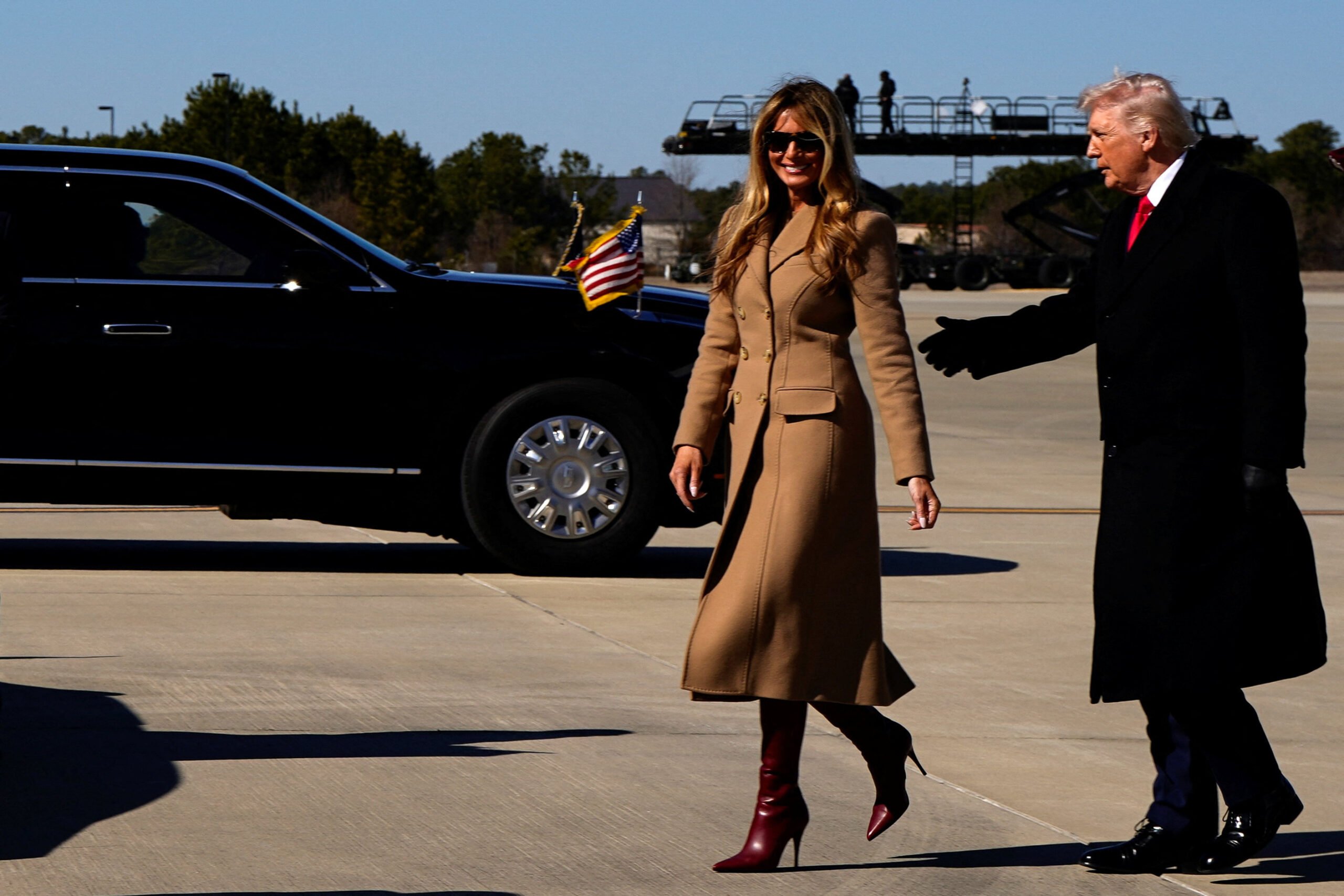Το camel παλτό είναι ίσως το πιο versatile κομμάτι κάθε χειμερινής γκαρνταρόμπας, και η Melania το έχει επιλέξει πολλές φορές. Με tailored εφαρμογή και minimal αισθητική, το συγκεκριμένο σχέδιο αποκτά νέα δυναμική όταν συνδυάζεται με έντονα αξεσουάρ, όπως κόκκινες γόβες ή statement γάντια. Είναι η τέλεια ισορροπία ανάμεσα στην κλασική κομψότητα και το σύγχρονο power dressing.