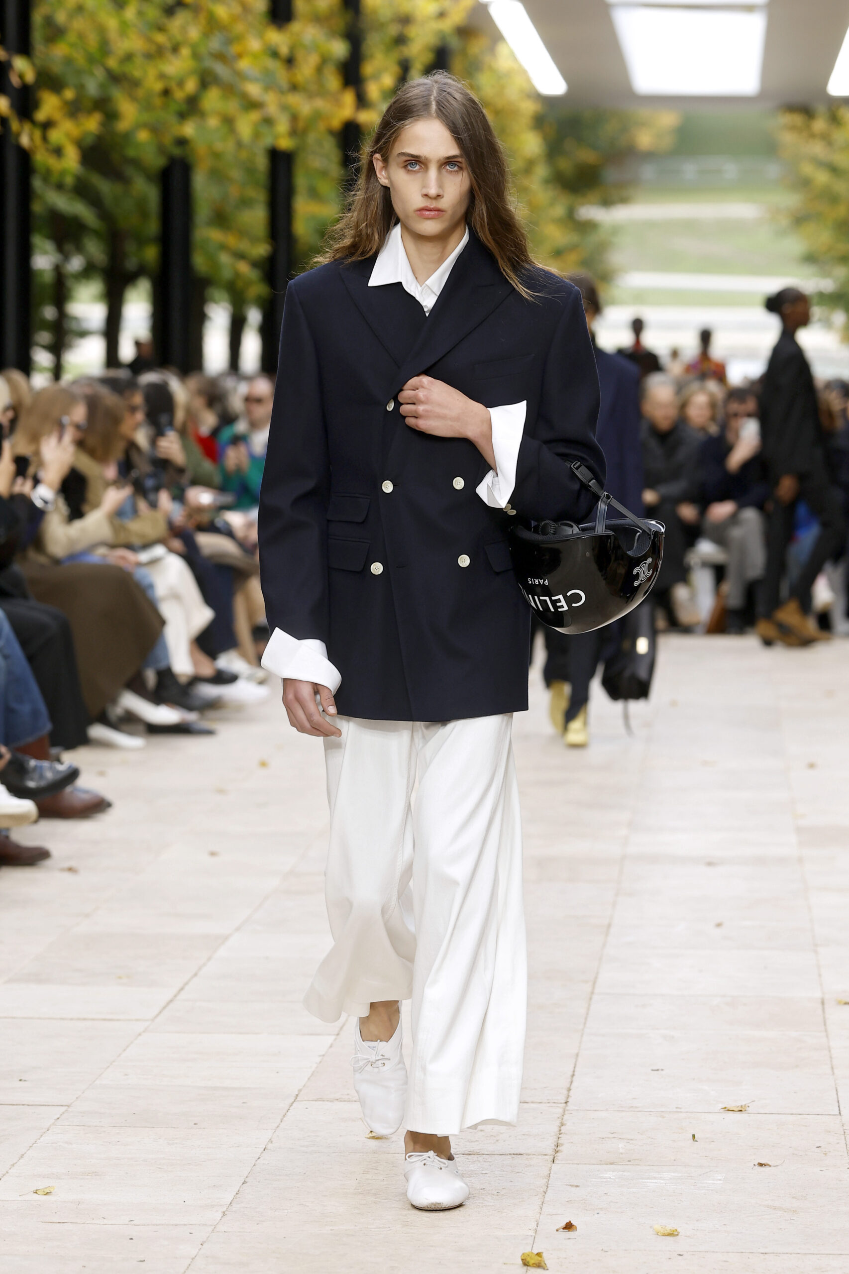 Ο Michael Rider φαντάστηκε τη νέα γυναίκα της Celine με κράνος ποδηλάτου, μεταλλικές ζώνες, δαχτυλίδια στα δάχτυλα των ποδιών και μεταξωτά μαντήλια να φοριούνται ως μπλούζες ή κάπες. Η δεύτερη συλλογή του για τον οίκο συνδύασε νέα look με το διαχρονικό bourgeois ύφος της Celine — για εμένα η πιο κομψή συλλογή της PFW μαζί με το ντεμπούτο του Anderson στον Dior!