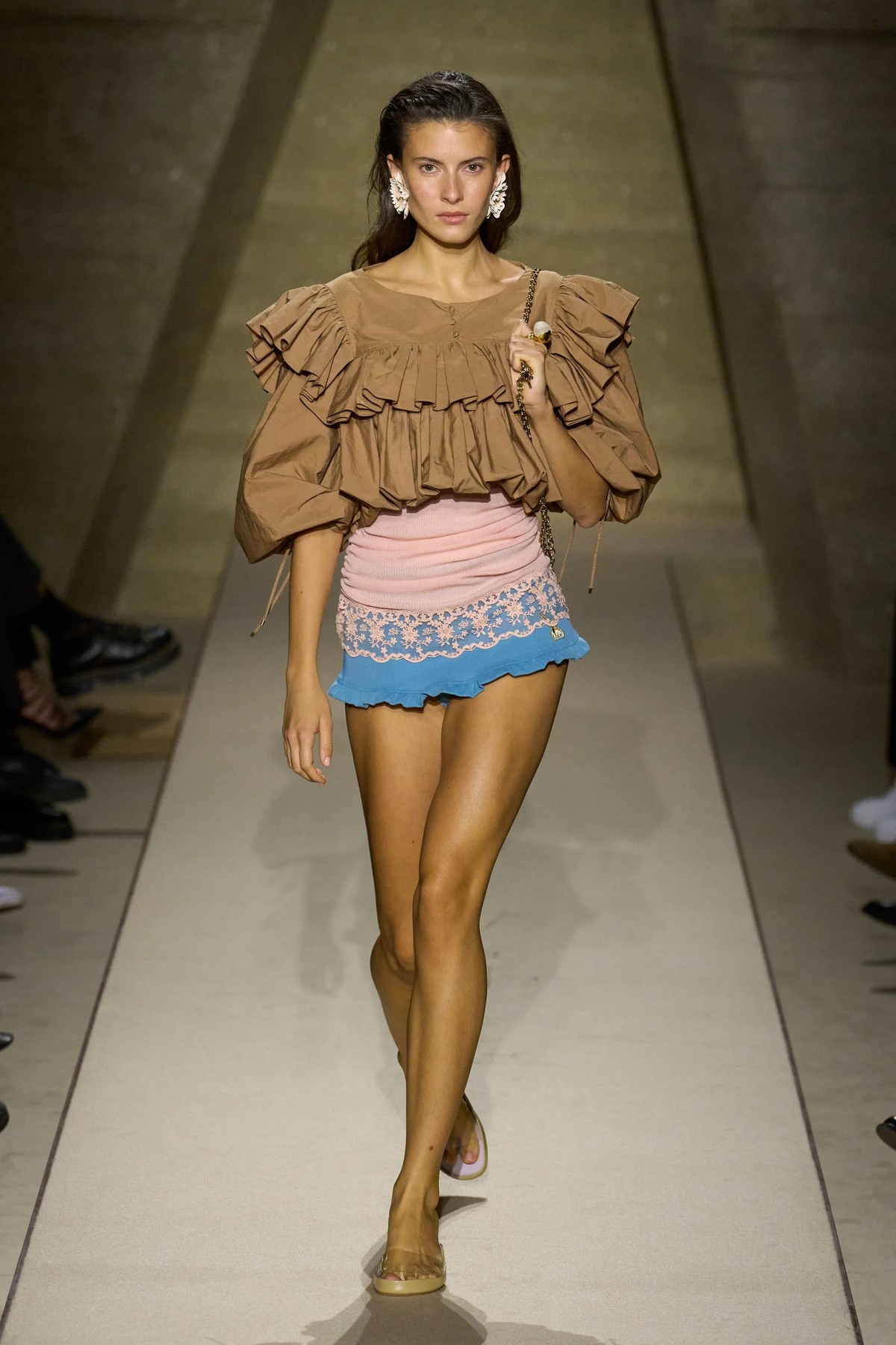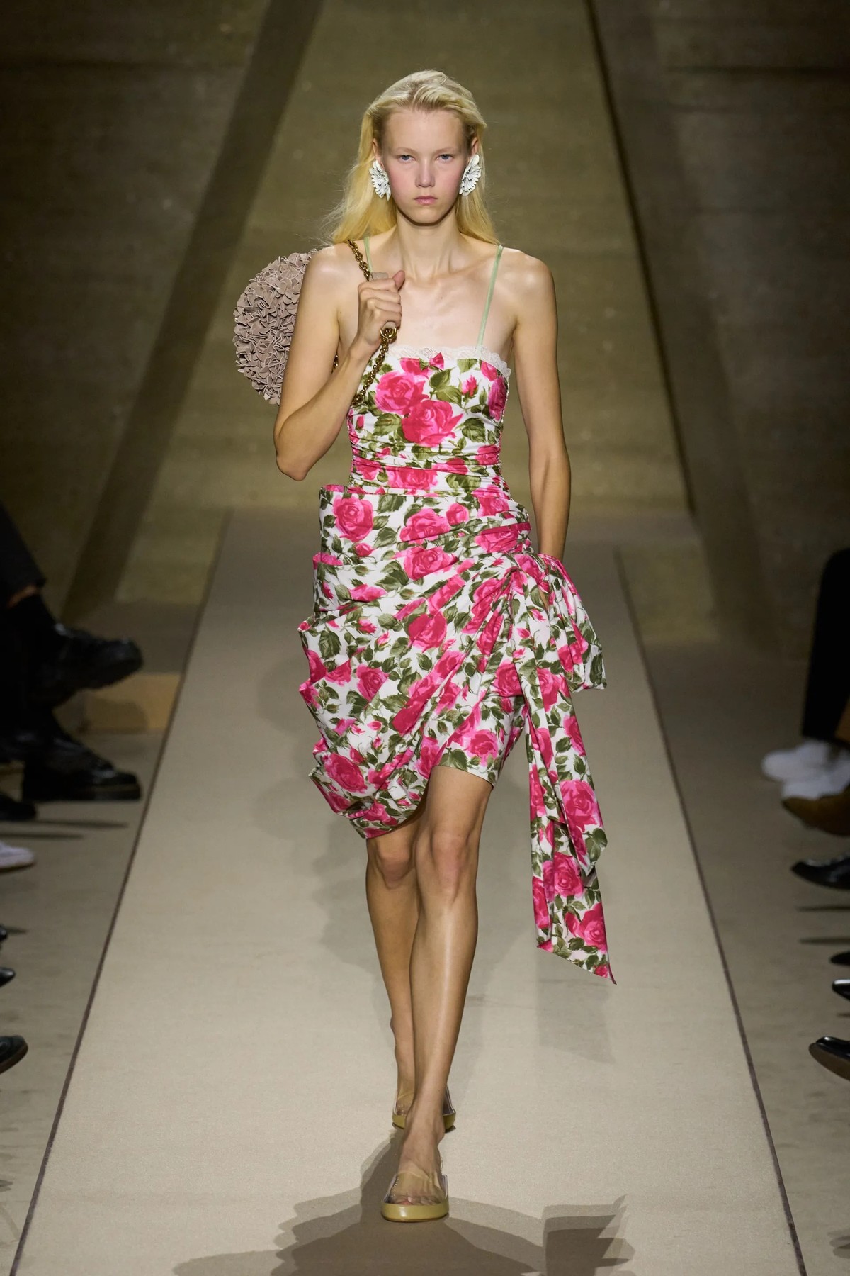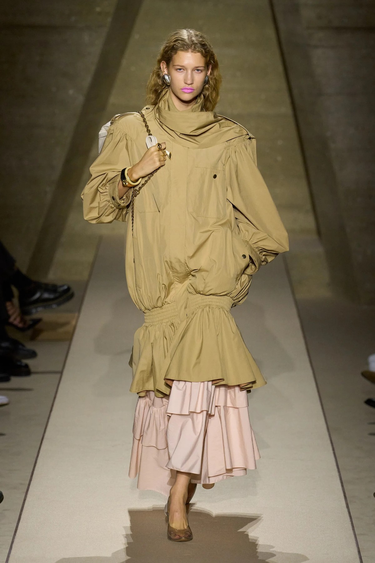 Για την άνοιξη του 2026, η Chemena Kamali θέλησε να επαναπροσδιορίσει τι σημαίνει every day style για τη Chloé. Η νέα συλλογή απομακρύνθηκε από το γνώριμο boho ύφος του brand και στράφηκε σε πιο δομημένες γραμμές εμπνευσμένες από τη δεκαετία του ’80. Floral φορέματα, ντραπέ φούστες και κομψά night-out looks κυριάρχησαν. Μία ενδιαφέρουσα στροφή — μένει να δούμε αν θα αγαπηθεί από το κοινό της.