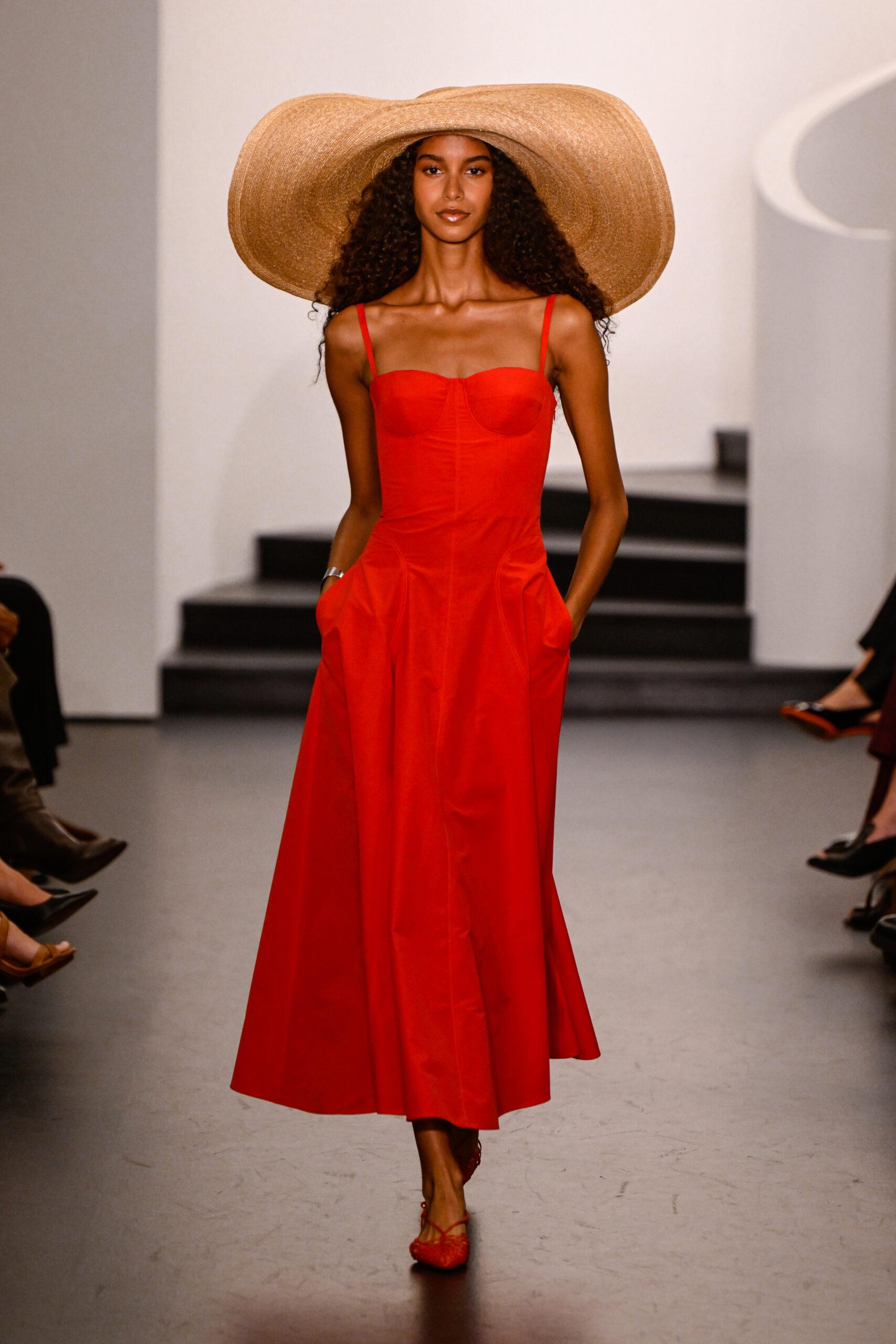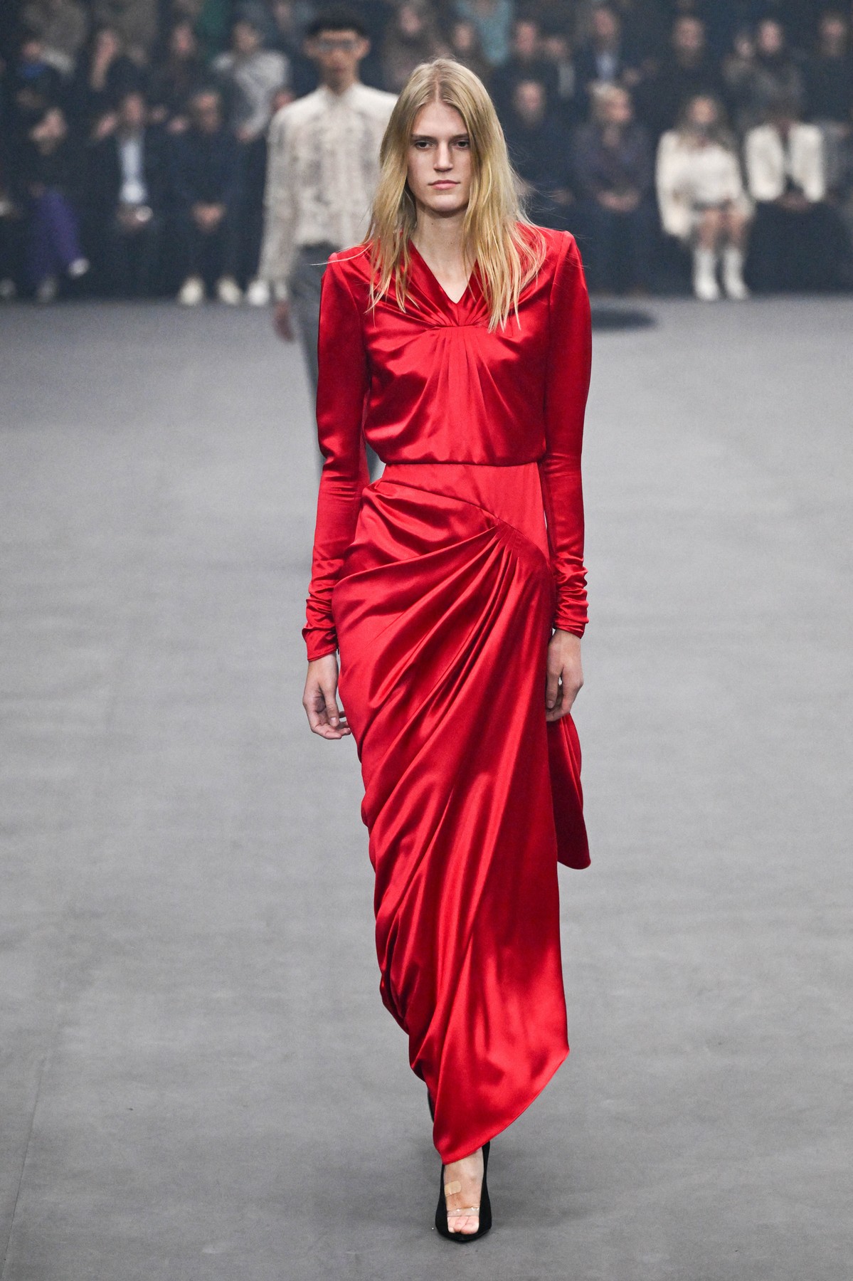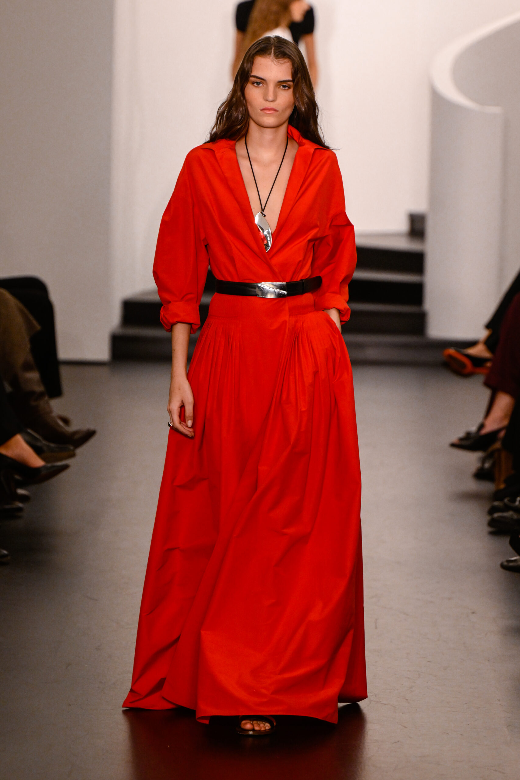 Σε επίπεδο σχεδίων, η ποικιλία είναι αυτή που κερδίζει. Φορέματα με έναν ώμο, κομψά slip dresses, structured μίνι, αλλά και μακριά φορέματα με πτυχώσεις που κινούνται με το σώμα. Κοινός παρονομαστής; Καθαρές γραμμές και έμφαση στη σιλουέτα, χωρίς περιττές λεπτομέρειες. Το κόκκινο κάνει όλη τη δουλειά.