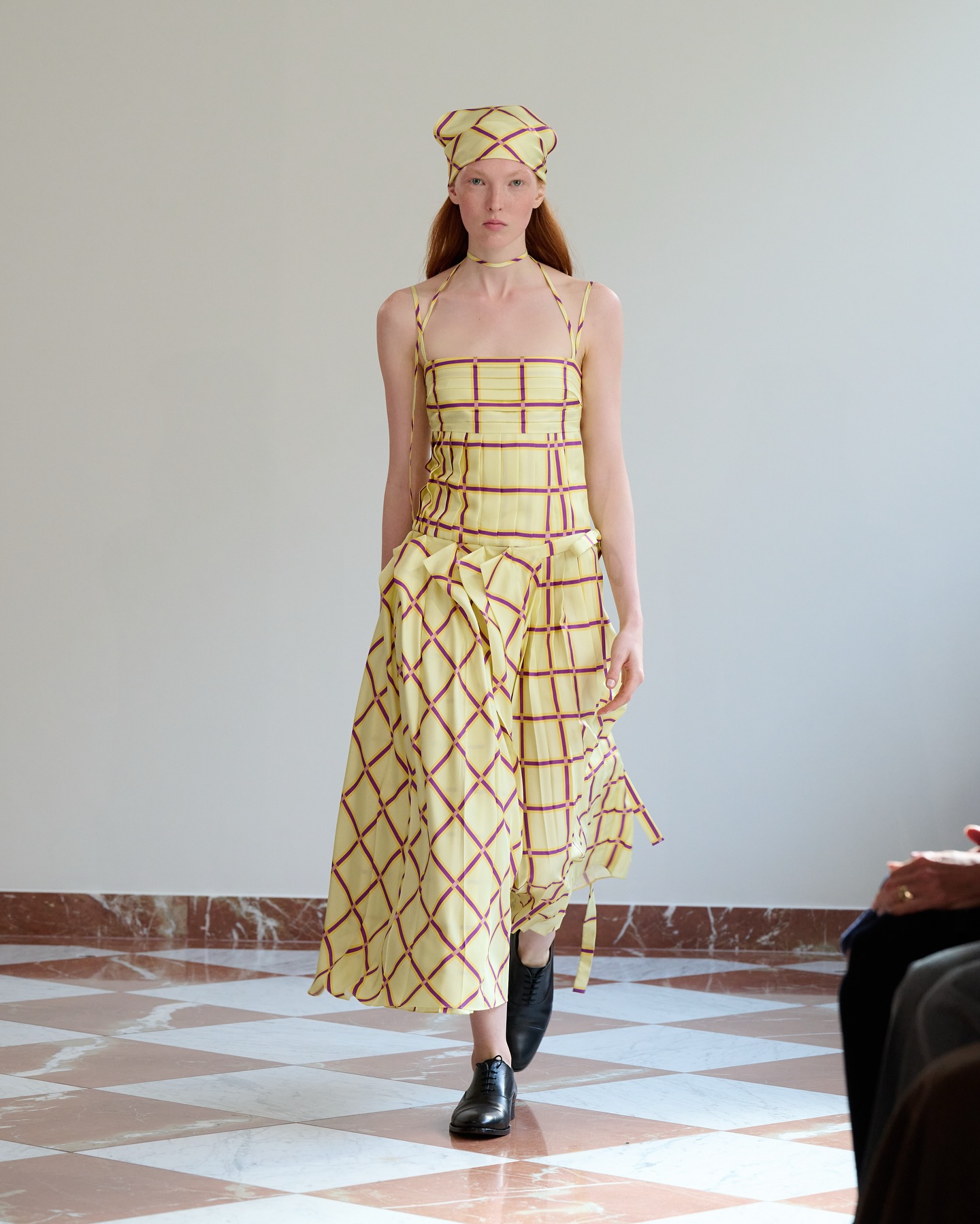Οι σχεδιαστές επανερμήνευσαν τη μαντίλα μέσα από διαφορετικές δεκαετίες και αισθητικές, αποδεικνύοντας ότι πρόκειται για ένα κομμάτι με ανεξάντλητες δυνατότητες. Στον Calvin Klein, η μαντίλα φόρεσε έντονα ’90s vibes, συνδυασμένη με slip φορέματα και αυστηρά ασπρόμαυρα looks, λειτουργώντας ως διακριτική αλλά καθοριστική λεπτομέρεια.