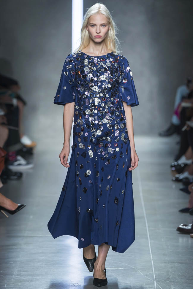Ο οίκος Bottega Veneta επανερμηνεύει τη θηλυκότητα για την άνοιξη του 2014 με μια συλλογή από ladylike looks με έμφαση στις πιέτες, τα ντραπέ και τα βολάν.