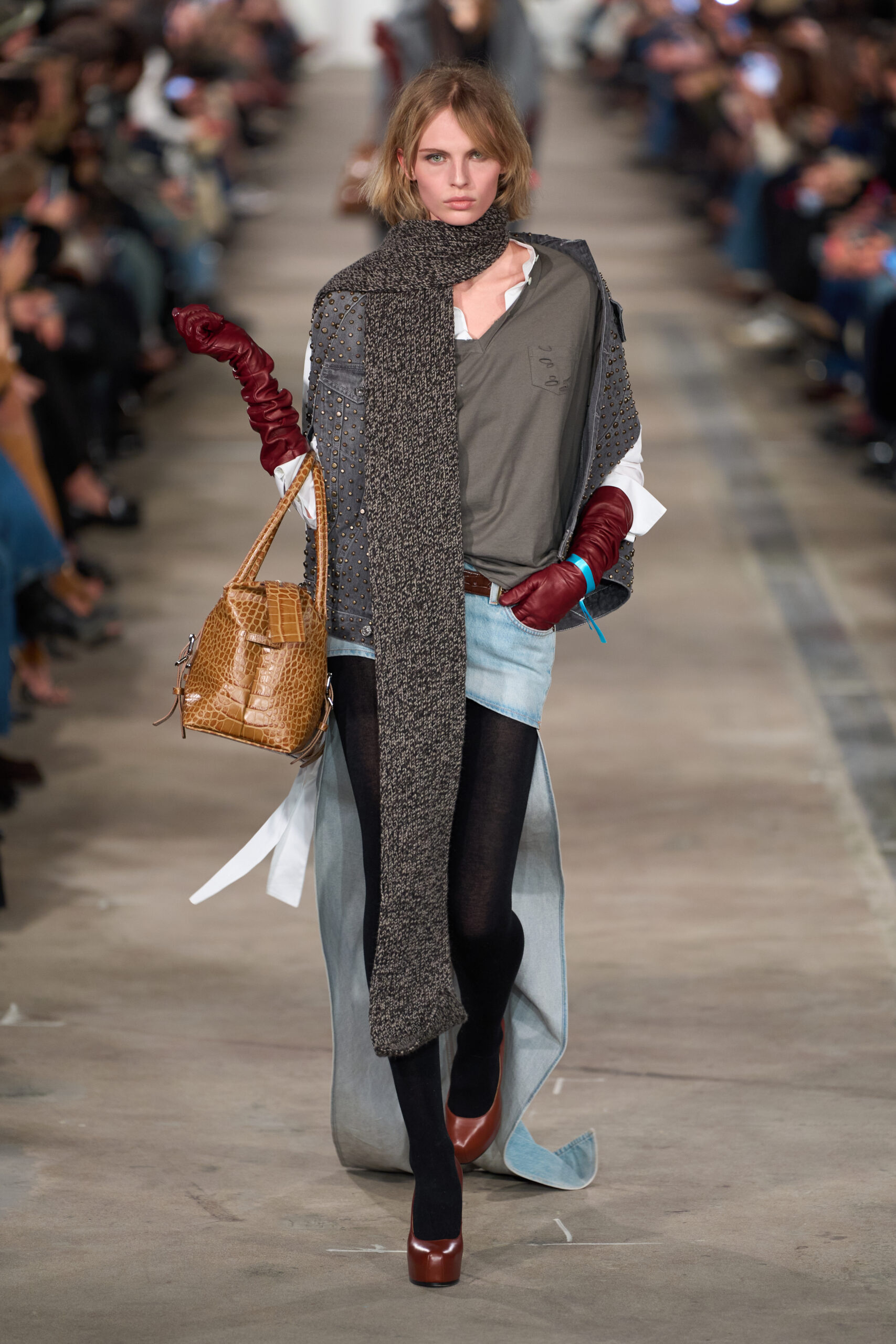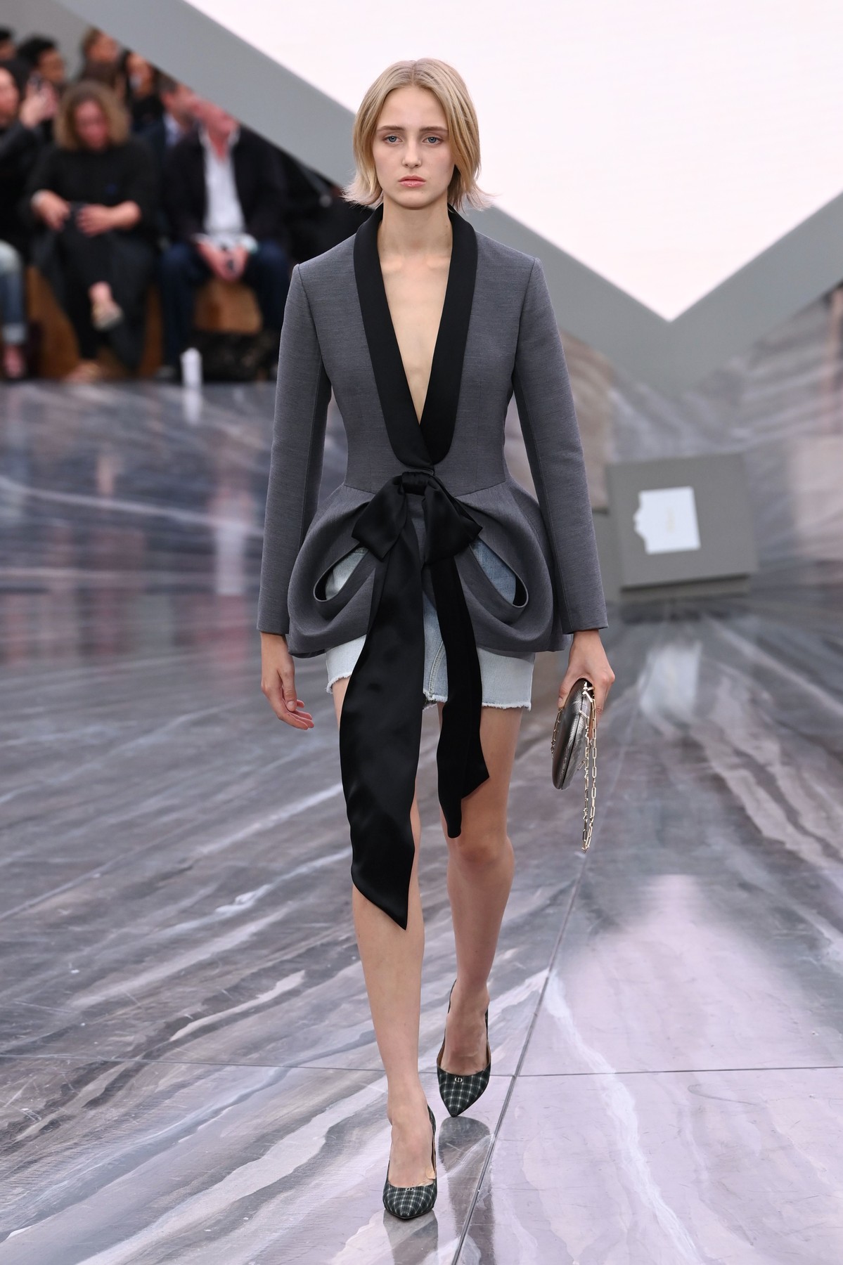 Η νέα εκδοχή της αντλεί έμπνευση από την Y2K αισθητική, αλλά αφήνει πίσω της την υπερβολική νοσταλγία. Η γραμμή γίνεται πιο καθαρή, τα υφάσματα πιο προσεγμένα και οι συνδυασμοί πιο δημιουργικοί. Ο Jonathan Anderson προτείνει denim minis με δομημένα σακάκια και κάπες, δημιουργώντας ένα απρόσμενο mix ανάμεσα σε cool και aristocratic style.