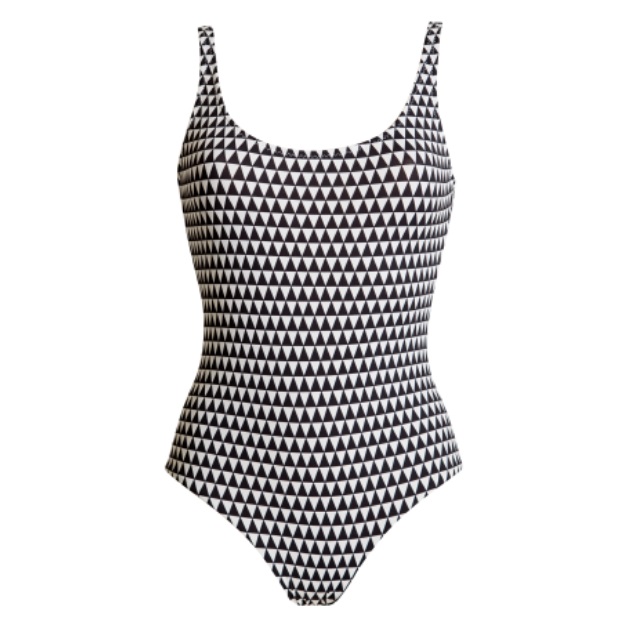 Ασρπόμαυρες αντιθέσεις σε op art στοιχεία. Αυτό το ολόσωμο μαγιό είναι και minimal αλλά και εντυπωσιακό για τη παραλία ή τη πισίνα.