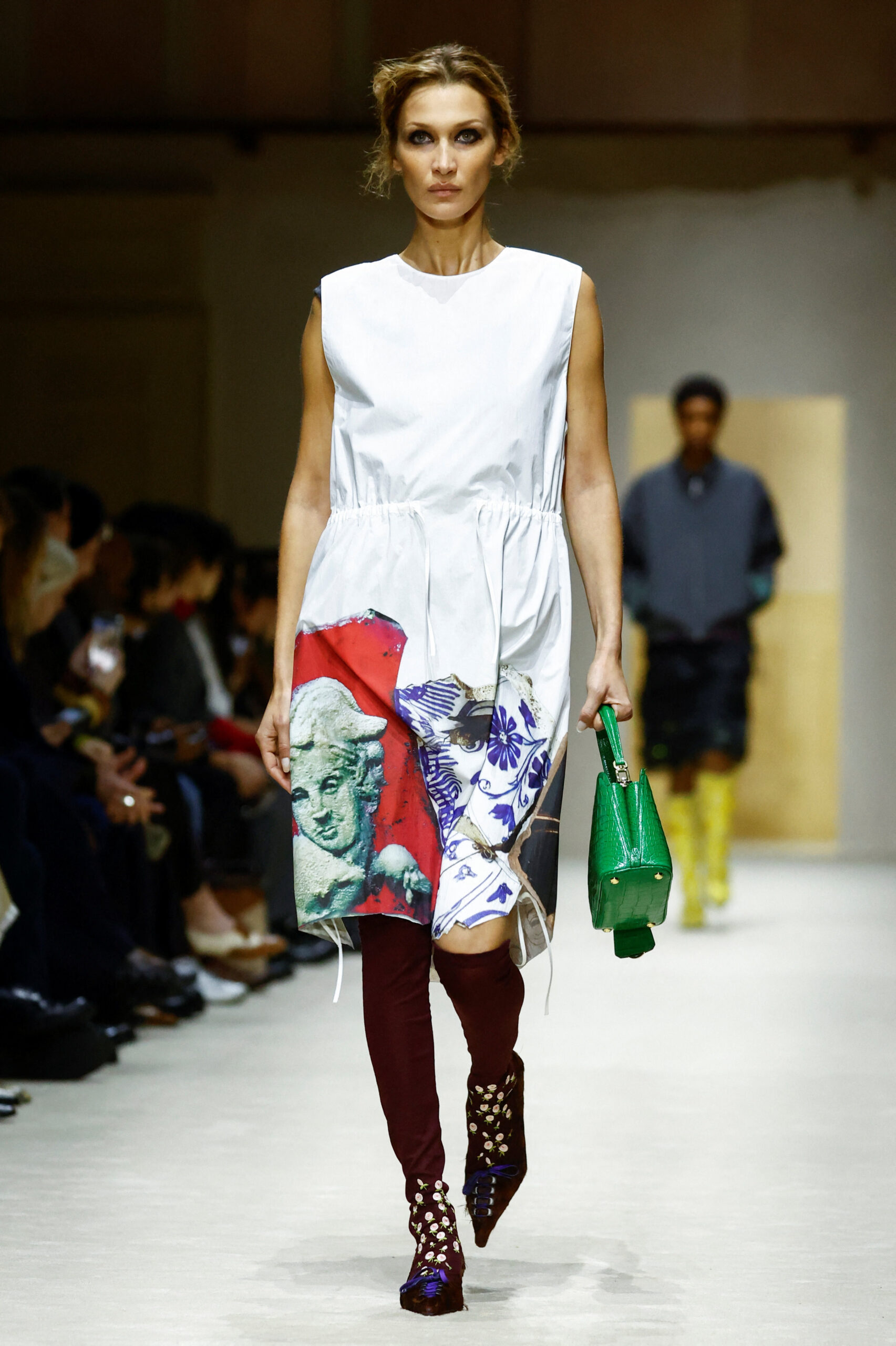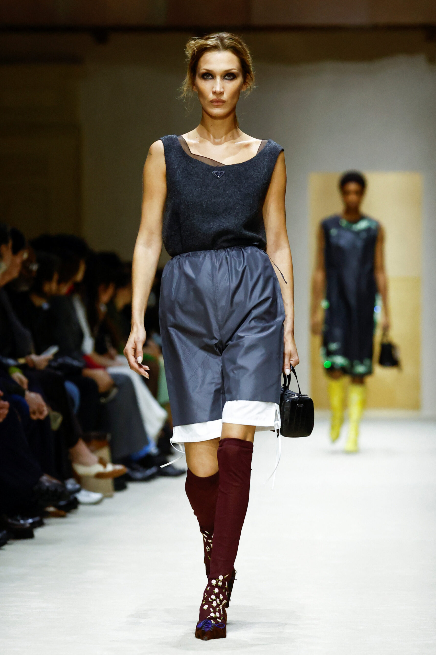 Ανάμεσά τους, η Bella Hadid ξεχώρισε ως η πρωταγωνίστρια του show, ενσαρκώνοντας ιδανικά αυτή τη φιλοσοφία της μεταμόρφωσης μέσα από 4 διαδοχικά looks.