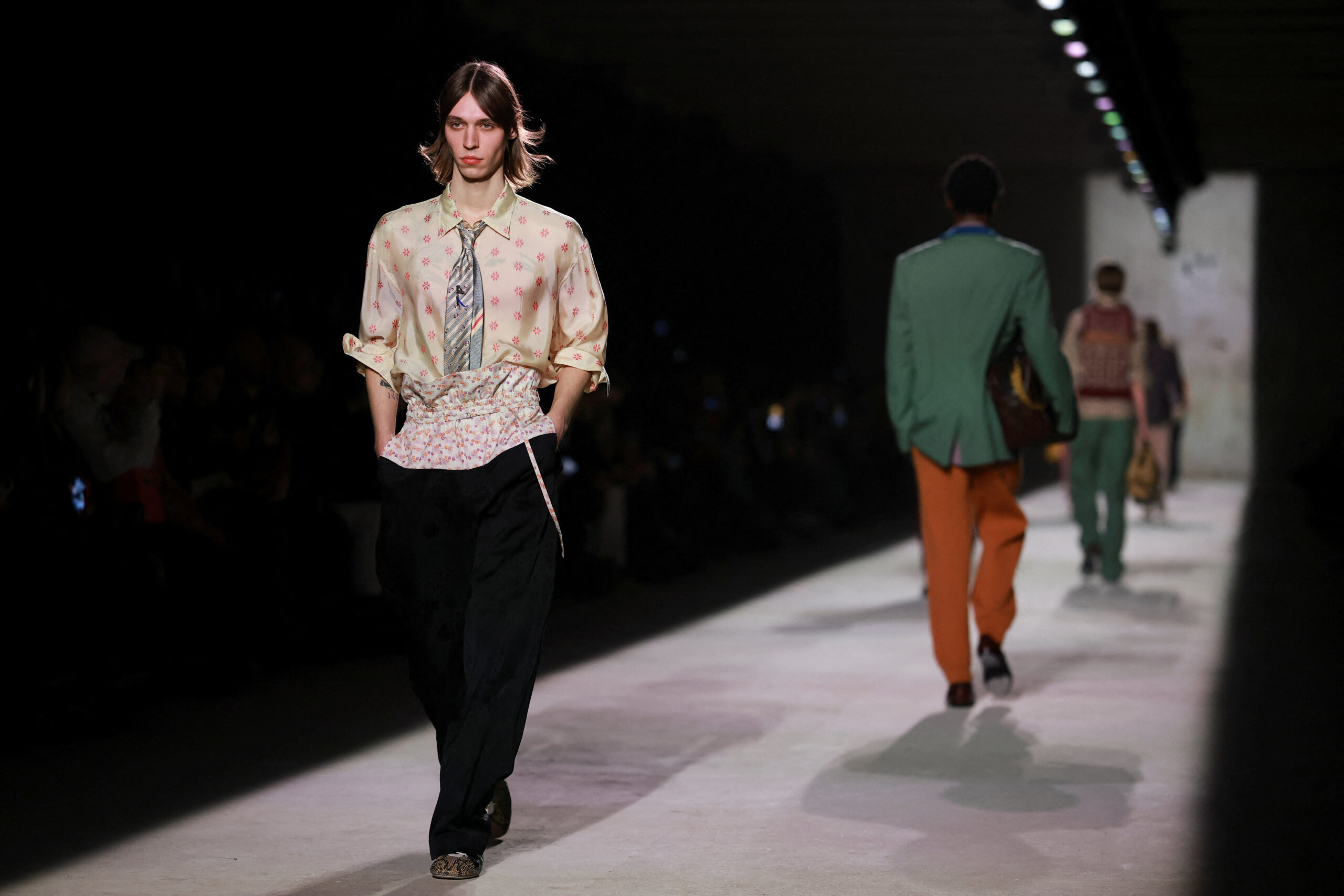 Η τάση, όμως, δεν περιορίστηκε στο Μιλάνο. Στον Dries Van Noten, ο Julian Klausner πρότεινε μια γκαρνταρόμπα που ισορροπεί ανάμεσα στην άνεση και το συναίσθημα. Τα μανίκια των πουκάμισων φοριούνται σηκωμένα πάνω από πλεκτά. Μία αδιάφορη εμφάνιση που όμως είναι απόλυτα μελετημένη.