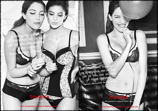 Για το Φθινόπωρο/Χειμώνας 2013, η Triumph αποτυπώνει στην καμπάνια της αλλά και στις δημιουργίες της, την ταυτότητα της.Οι σχεδιαστές της γιορτάζουν την επιτυχημένη πορεία χρόνων και μοιράζονται μαζί μας, όλα αυτά που αποτελούν την έμπνευση τους: